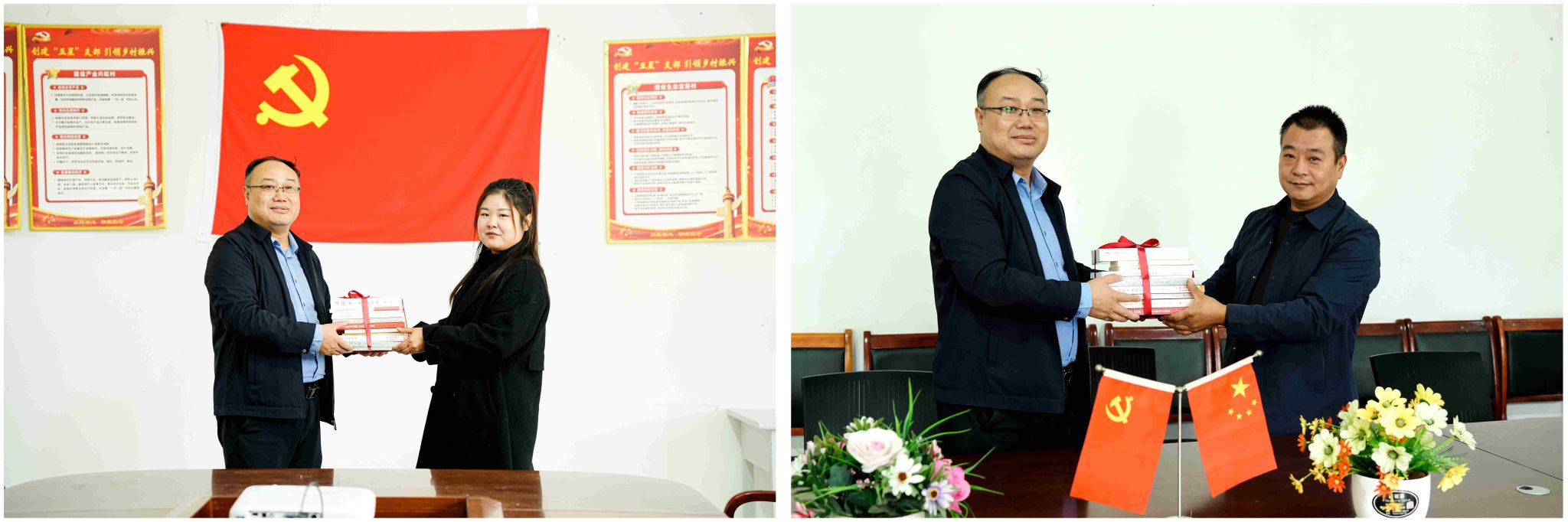 为进一步夯实村级党组织的思想理论基础,提升政治引领能力,机关党委向两个村分别赠送了一批政治理论类学习书籍。这批书籍内容涵盖党的创新理论、政策解读、基层高效能治理等多个方面,旨在为乡村党员干部提供“精神食粮”,帮助其提升理论素养和履职能力,筑牢乡村振兴的战斗堡垒。