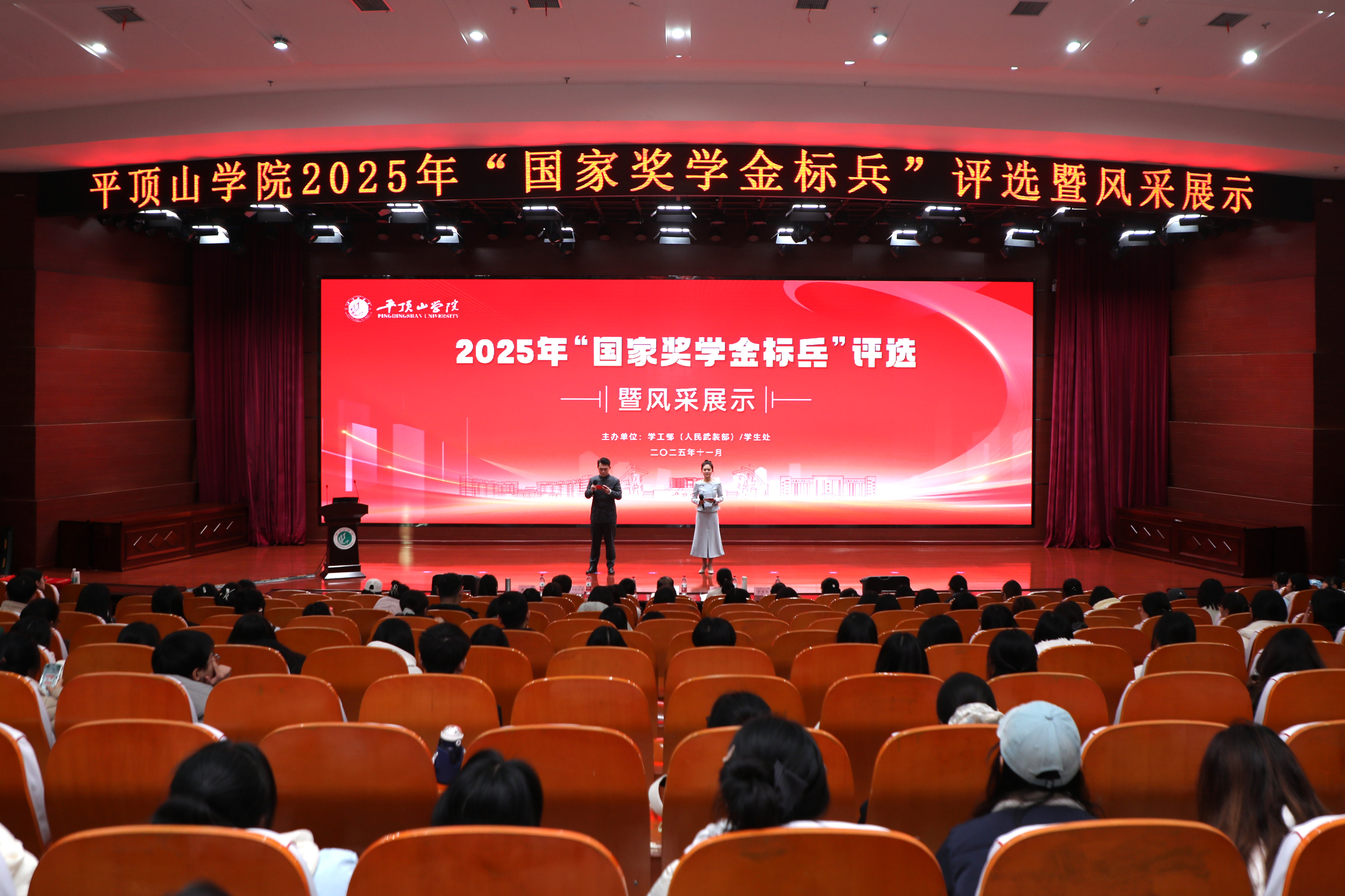 为充分发挥国家奖学金获奖学子的榜样引领效能,深化资助育人内涵建设,11月27日下午,我校在中心会议室成功举办2025年“国家奖学金标兵”评选暨风采展示活动。副校长代克杰出席活动并为获奖学生颁奖,党委宣传部、团委、招生就业处、教务处、学生处等职能部门负责人担任评委,共同见证青年榜样的成长风采。