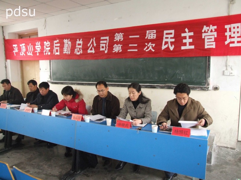 2007年12月20日下午,后勤总公司一届二次民主管理大会在东校区教学楼2007教室胜利召开。校工会委员、文学院教授叶爱欣,校后勤处处长张延辉及总公司68名职工代表参加会议。大会由总公司党总支副书记张晓青同志主持。