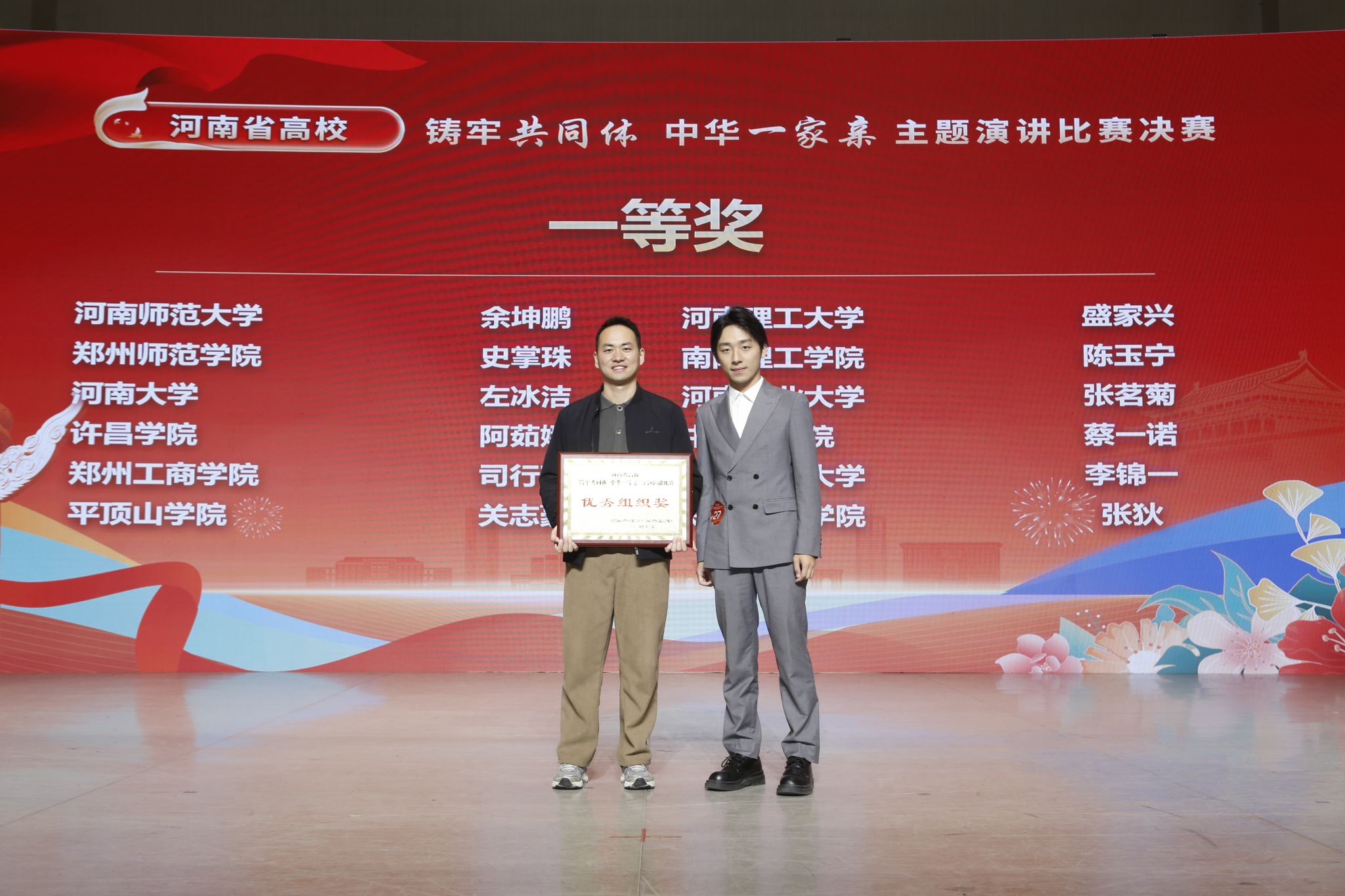 11月14日,河南省高校“铸牢共同体,中华一家亲”主题演讲比赛决赛在河南师范大学举行。我校参赛选手关志豪表现出色,荣获一等奖,同时学校荣获优秀组织奖。