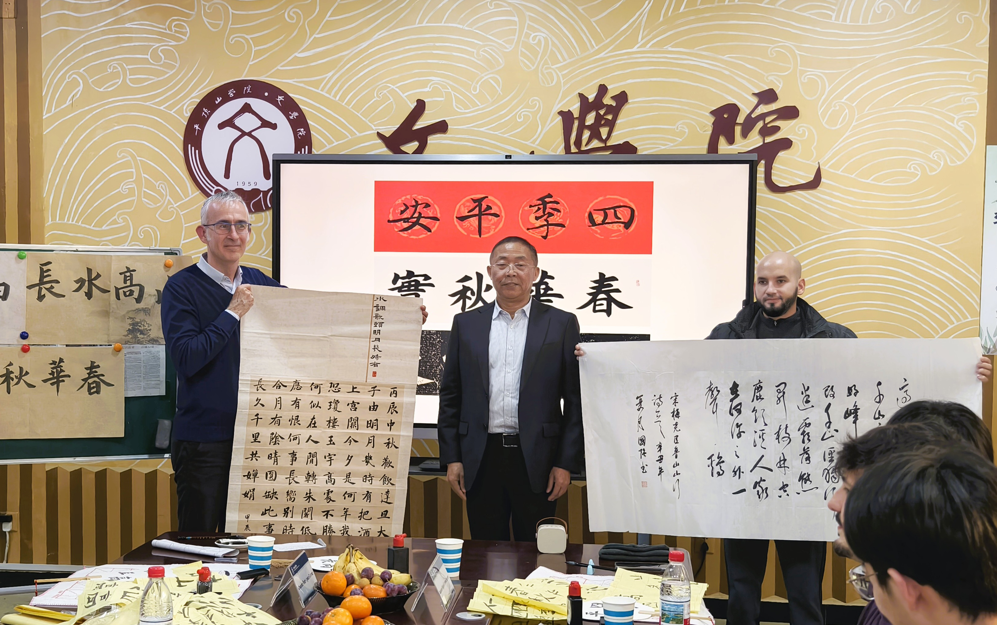 此次活动旨在以汉语书法为载体,传播中华民族汉字研究与书法优秀成果。在活动中,外籍教师在中方师生指导下提笔书写汉字成语,从“墨海拾珍”“笔道溯源”到“翰墨初试”“字里相逢”,逐步感知汉字结构与笔墨意趣,在一笔一划间加深了对汉字审美与中国文化内涵的理解。于长立代表学校向外籍教师赠送书法作品,以笔墨定格友谊。于长立表示,“豫见马拉加”系列活动以语言互学为切入点,联动校内多学院资源,通过沉浸式、互动式传播,让外籍教师真切感受中华文化的魅力,也生动体现了我校中外合作办学在促进文明互鉴方面的成果。