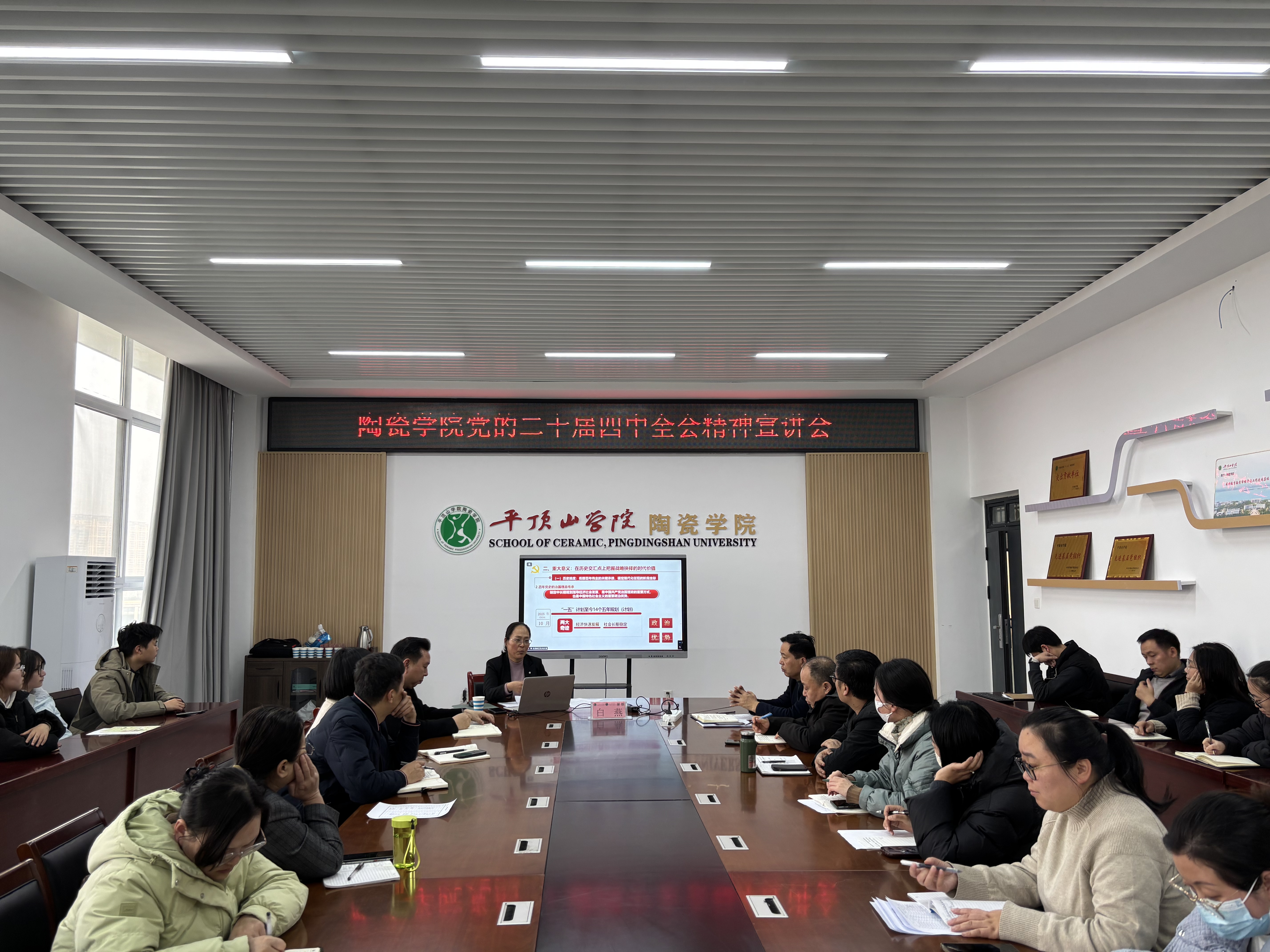 白燕指出,党的二十届四中全会精神是推进中国式现代化的纲领性指引,其关键在于实干落实,明确提出了四个方面的重要要求。一要思想铸魂,在“学好文”上下功夫。做到“三个结合”通过多种形式深学细悟党的二十届四中全会精神,将“大政策”转化为“大道理”。二要靶向发力,在“答好题”上有思考。秉持战略、历史、发展三种眼光,切实将党的二十届四中全会精神与学院学科建设、人才培养等工作紧密结合,为中国式现代化贡献陶瓷学科力量。三要制度赋能,在“迈好步”上讲方法。抓牢发展、创新、人才三大关键,完善激励、保障、督查机制,强化落实成效。四要作风护航,在“履好责”上见实效。强化担当作为,坚守求真务实作风,以实干实效实绩推动党的二十届四中全会精神落地生根。