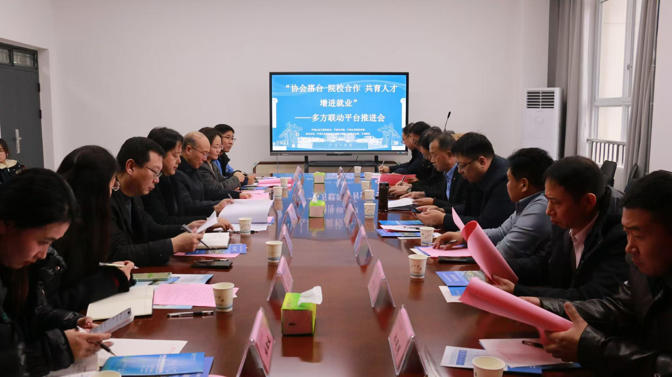 12 月 22 日下午,“协会搭台 院校合作 共育人才 增进就业”多方联动平台推进会在我校召开。平顶山市财经学校党委书记周勃、平顶山市电子商务协会秘书长姬国平、我校副校长李波及相关部门、学院负责人,企业代表及部分师生代表齐聚,共探“政会校企”协同育人新路径。会议由平顶山市电子商务协会秘书长姬国平主持。