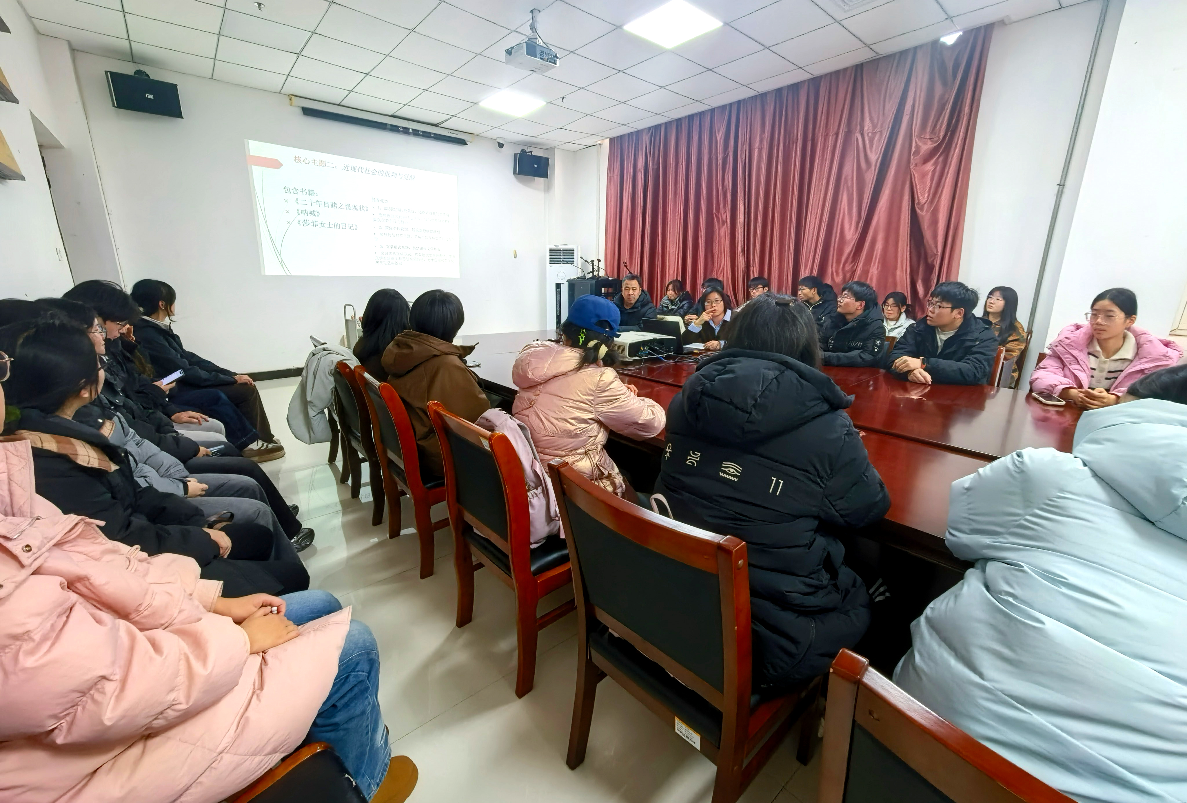 作为活动核心环节,历经2-3周的借阅共读,12月25日下午,文学经典阅读交流会在图书馆六楼会议室如期举行。60余名学生怀揣深刻的阅读感悟齐聚现场,展开了一场思想的碰撞与心灵的对话。2024级外国语学院的黄思源同学谈及《呼兰河传》时动情地说:“萧红用细腻的笔触描绘了呼兰河畔的风土人情,既有童年时光的纯真快乐,也饱含着对故乡、对亲人的深切眷恋与淡淡哀愁。阅读时,我仿佛跟随作者回到了那个遥远的小城,感受到了旧时代人们的生活状态与精神世界。这部作品让我明白,真正的经典能够跨越时空,引发读者内心深处的情感共鸣,也让我更加珍惜当下的生活与身边的亲人。”2025级新闻与传播学院的姜南雨同学分享了对《飘》的感悟:“主人公郝思嘉给我留下极为深刻的印象,我尤其欣赏她在经历了种种磨难后,依然能够怀揣希望、奋勇前行。这部作品不仅让我领略了美国南北战争时期的社会风貌,更让我学会了在挫折面前保持坚韧,在迷茫中探寻方向,这份精神力量将激励我在未来的学习和生活中勇敢面对一切挑战。”分享会上,朱海英老师指出,文学是一个民族的精神秘史。文学经典历经时光淬炼,沉淀着前人的人生感悟与生存智慧。沉浸其中,我们既能洞悉人性的复杂、世事的规律,又能在迷茫时找到指引、在困惑时获得启迪,让人生之路少些彷徨与弯路,多些笃定与坦途。朱海英对40余位学生的发言进行了点评与深度解读,引导学子们更深入地理解经典的价值。