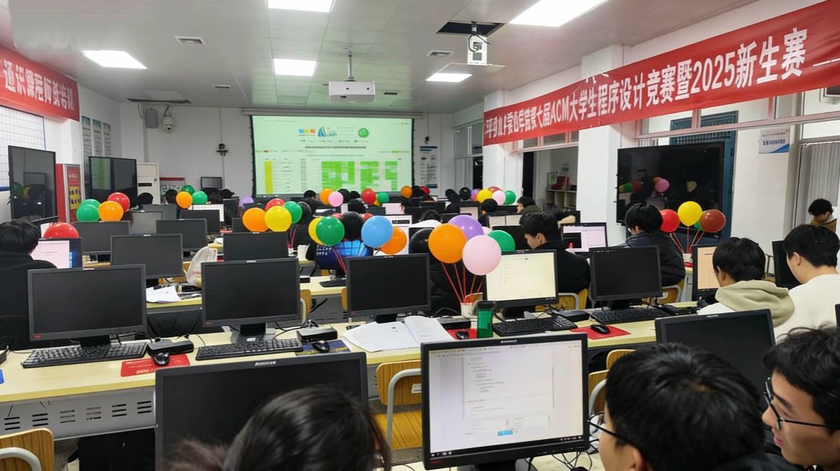 12月27日,人工智能学院成功举办平顶山学院第七届大学生程序设计大赛暨2025新生赛。本次比赛共有来自人工智能学院、信息工程学院和马拉加工程学院的120支队伍参加。现场比赛气氛紧张而热烈,5小时的激烈角逐既是对参赛选手体力的考验,更是对其思维能力、编码能力和拼搏意志的挑战。最终,人工智能学院的李景豪、付有阳和焦炳伦组成的队伍获得冠军。人工智能学院的张帆、王姿涵、程杰组成的队伍正确解答9题,获得最佳女队奖。人工智能学院的陈鸣楠和齐雨萌组成的队伍在4小时59分时正确解答8题,获得顽强拼搏奖。此外,还有12支队伍获得金奖,26支队伍获得银奖,39支队伍获得铜奖。