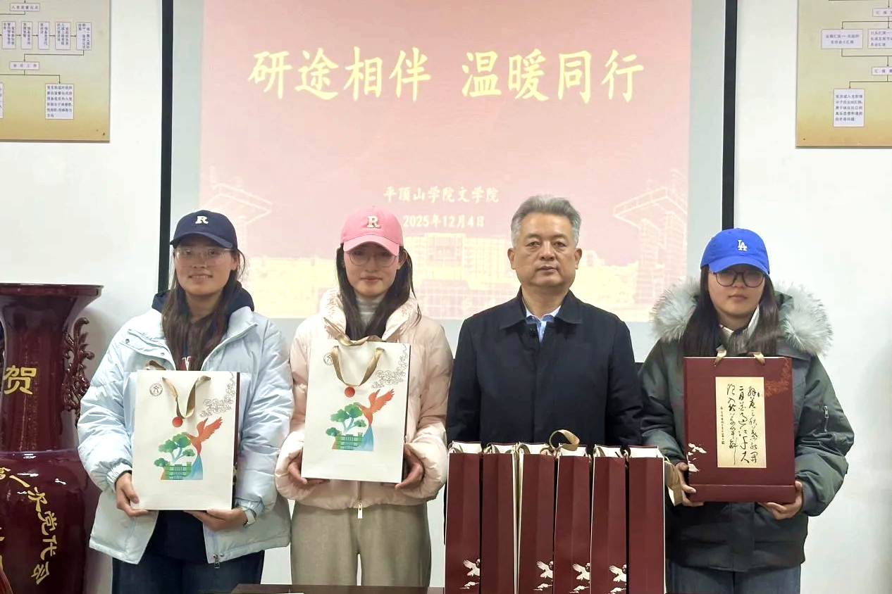 在“研途相伴、温暖同行”考研慰问座谈会上,文学院学工办副主任、2022级辅导员张驰首先介绍了学生的学习备考情况。2022级汉本专业王洁,2022级汉教专业、国家奖学金获得者李东桓代表考研学生作了交流发言。文学院院长孙振杰进行了考前动员。活动中,许建辉为同学们送上了寓意“成功上岸”的暖心大礼包,传递了学校的深切关怀与殷切期望,将学校的关心和关爱送到学生身边,以实际行动为同学们加油鼓劲,温暖学子备考路,激励大家坚定信心、勇往直前。