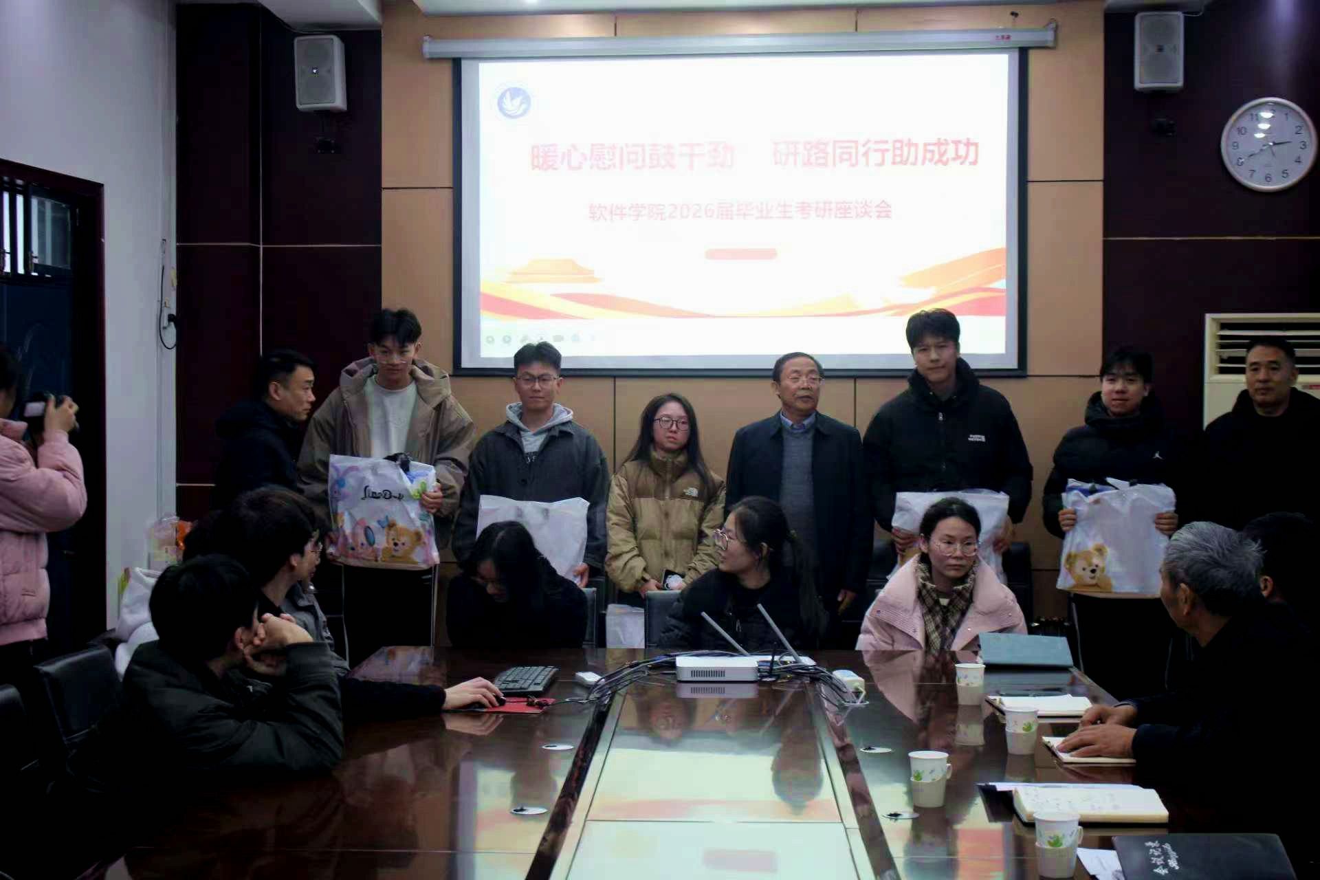 18日下午,在科技楼214会议室召开了以“暖心慰问鼓干劲,研路同行助成功”为主题的考研学生代表座谈会,会议由软件学院党委书记张喜顺主持。