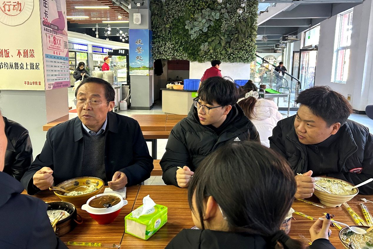 18日中午,于长立与在校生代表一同在学生餐厅共进午餐。席间,他结合自身经历,亲切寄语在场同学,提出了四点殷切希望:一是希望同学们会学习、会做人、会做事,在学好专业知识的同时,积极参与各项活动提升综合素养,保持积极乐观心态,加强与老师沟通,与同学和谐相处;二是希望同学们学会锻炼好身体,养成长期体育锻炼的好习惯;三是希望同学们学会感恩,感恩学校的培养、父母的养育,做一个有孝心、有责任感的人;四是希望同学们学会规划人生目标,以清晰的目标为指引,持续努力奋斗。