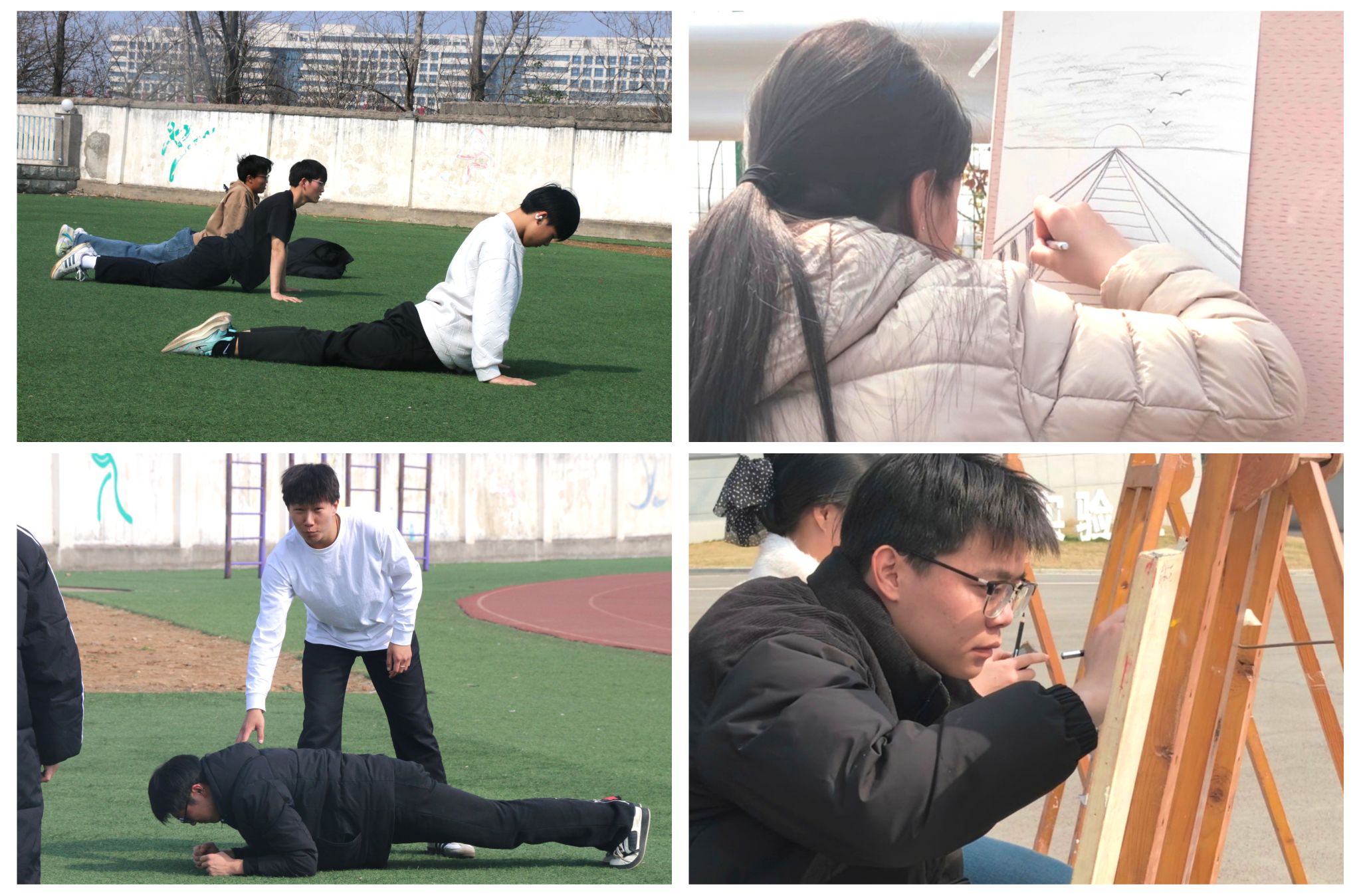 活力美学课堂邀请体育学院相关专业学生带领同学们体验宿舍轻运动与健康塑形课程,通过无器械燃脂训练与体态矫正教学,帮助学生在有限空间内科学激活核心肌群,掌握高效安全的居家锻炼方法。自然美学课堂则由艺术设计学院学生指导户外写生实践,从取景构图到色彩搭配,引导同学们用画笔记录校园周边的自然风光与建筑之美,在实践中提升审美素养。