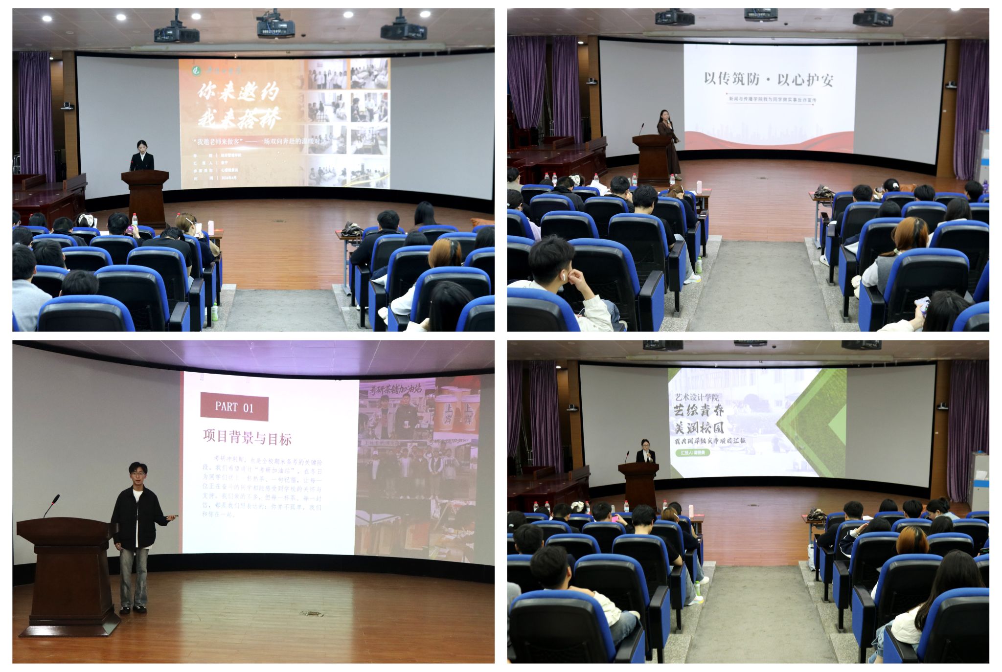 经各学院推荐、材料审核,最终19个项目进入校级决赛,项目涵盖学业促进、就业创业、心理健康、社会实践、文体活动等多个类别。比赛现场,各项目负责人分别围绕项目的背景、做法和成效作介绍。陶瓷学院学生会依托专业特色,打造“指尖陶韵·心向暖阳”心理泥塑项目,将陶艺与心理健康教育融合,为同学们提供了一种简单易学、行之有效的心理疏解方式。法学院推出“三考”全维赋能工程,聚焦考研、考公、法考三大发展路径,设立静音自习室、搭建考研信息平台、组建学业帮扶团队,有效解决学生备考中的信息闭塞与应用能力不足等问题。人工智能学院团委书记岳精精作总结点评,她从项目背景、实施效果、推广价值等多方面为项目优化提供了指导。