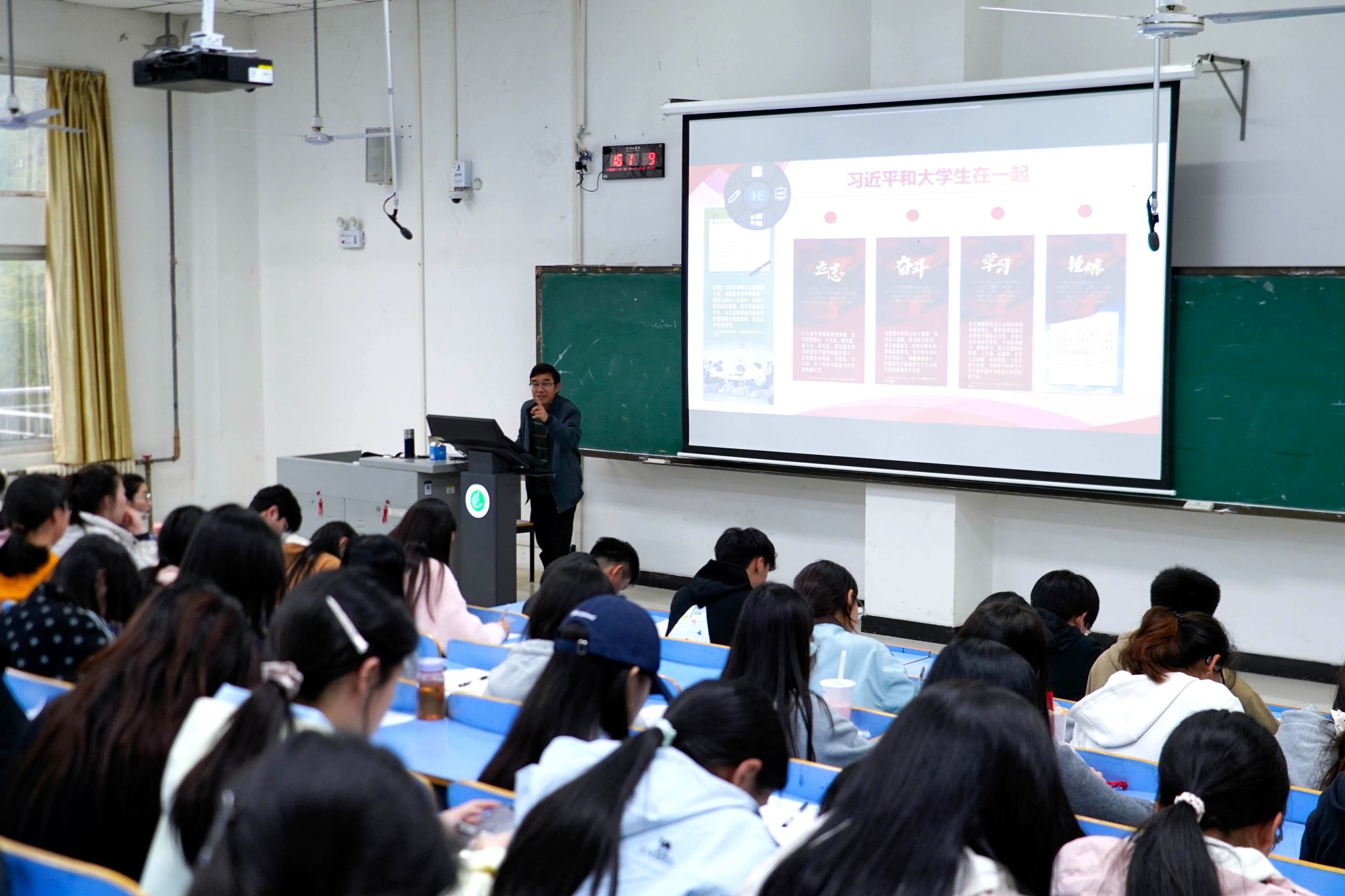 课堂上,王培文以习近平总书记对新时代青年的殷切期望为引,阐明新时代是圆梦逐梦的伟大时代,号召青年以昂扬之姿、奋斗之志,勇担重任,为民族复兴伟业接力拼搏。接着,他深入阐述了新时代面临的机遇与挑战,引导青年学生全面认识我国发展所处的历史方位,激励大家把握战略机遇、投身强国建设,以奋斗之姿为实现中华民族伟大复兴添砖加瓦。他表示,新时代是属于青年的时代。无论是平均年龄33岁、以90后为主力完成中国空间站“T”字构型建设的团队,还是扎根高原10年、完成国内首个陆域可燃冰勘探的李宽,他们都以吃苦耐劳、敢为人先的奋斗精神,成为引领新时代青年成才的先锋。