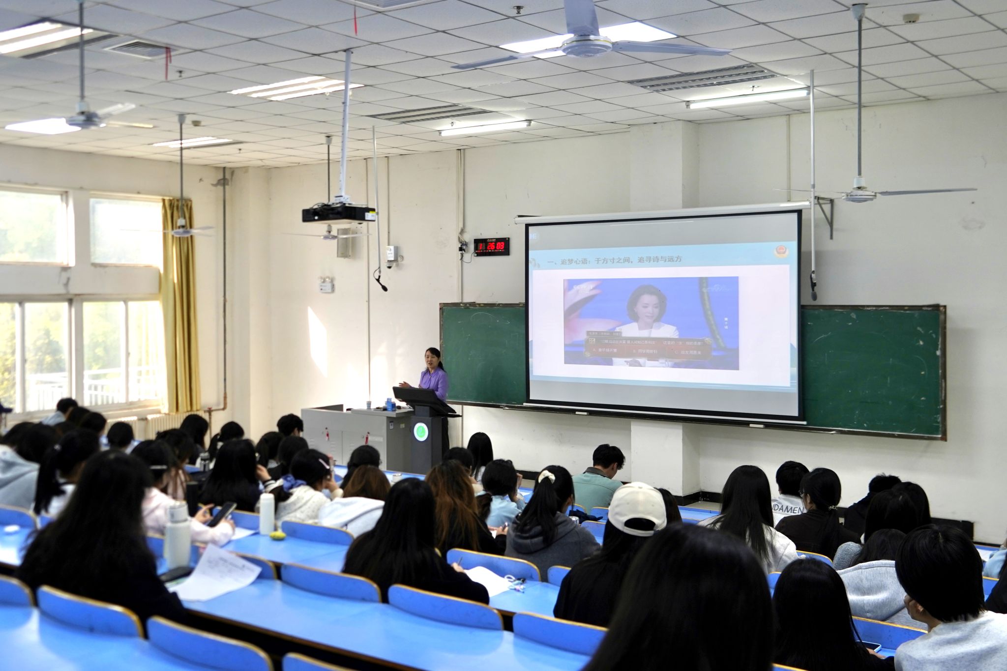 课堂上,胡艳琴结合自己参加《中国诗词大会》并荣获季军的亲身经历,系统分享了诗词学习的方法。从童年时期毛主席诗词的启蒙熏陶,到备赛期间日复一日的积累沉淀,她以自身成长历程为例,深入阐释了“厚积薄发”的内涵,勉励同学们唯有持之以恒、夯实基础,才能在机遇来临时牢牢把握。胡艳琴表示,当代大学生应充分利用宝贵时间,始终怀揣追梦初心,不盲从、不放弃,在个人成长与时代使命的同频共振中实现价值,将“小我”融入“大我”,主动扛起新时代青年的责任与担当。