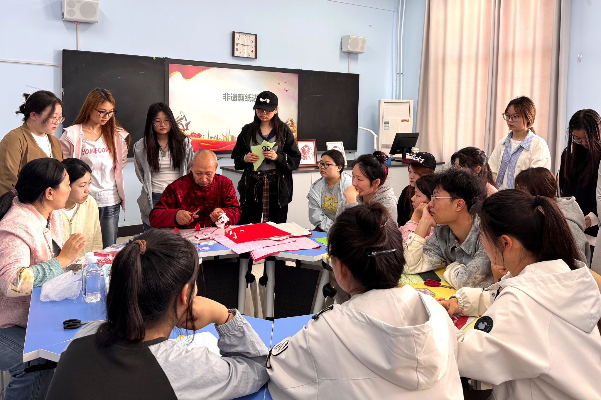 4月9日,由校团委主办、教师教育学院承办的“非遗剪纸进校园 匠心传承润青春”主题活动在艺术楼举行。活动邀请河南省非物质文化遗产民间剪纸代表性传承人、鲁山县张官营镇艺人陈子豪走进校园,为师生带来一场生动的剪纸艺术体验课。