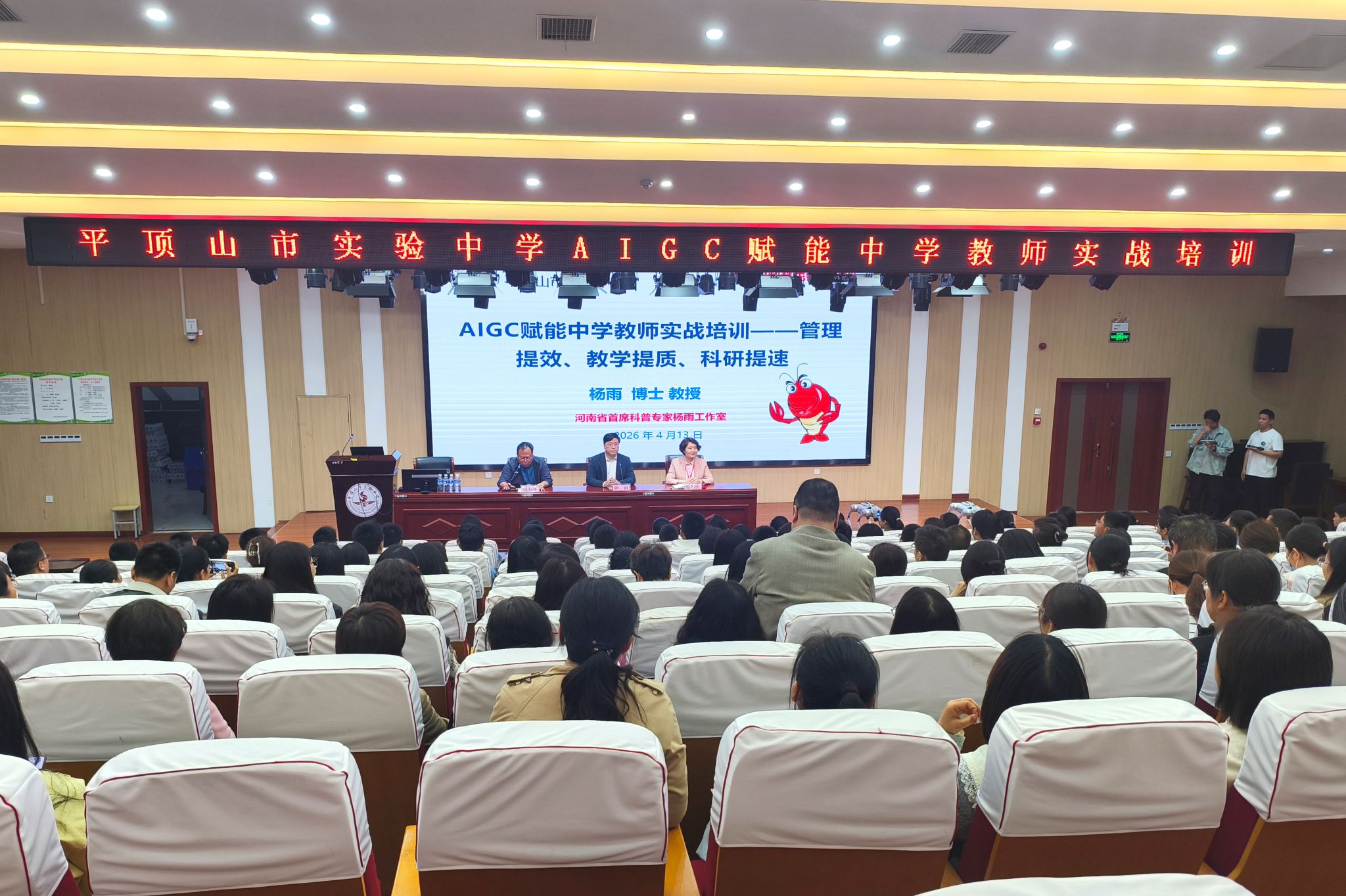 为持续推动人工智能前沿技术与基础教育深度融合,助力地方基础教育数字化转型与高质量发展,4月13日,我校人工智能学院副院长、平院AI智慧服务团核心成员杨雨,应邀前往平顶山市实验中学开展“AIGC赋能中学教师实战培训”专题讲座。平顶山市实验中学全体教职工及学生代表参加本次活动,活动由该校校长周小珂主持。