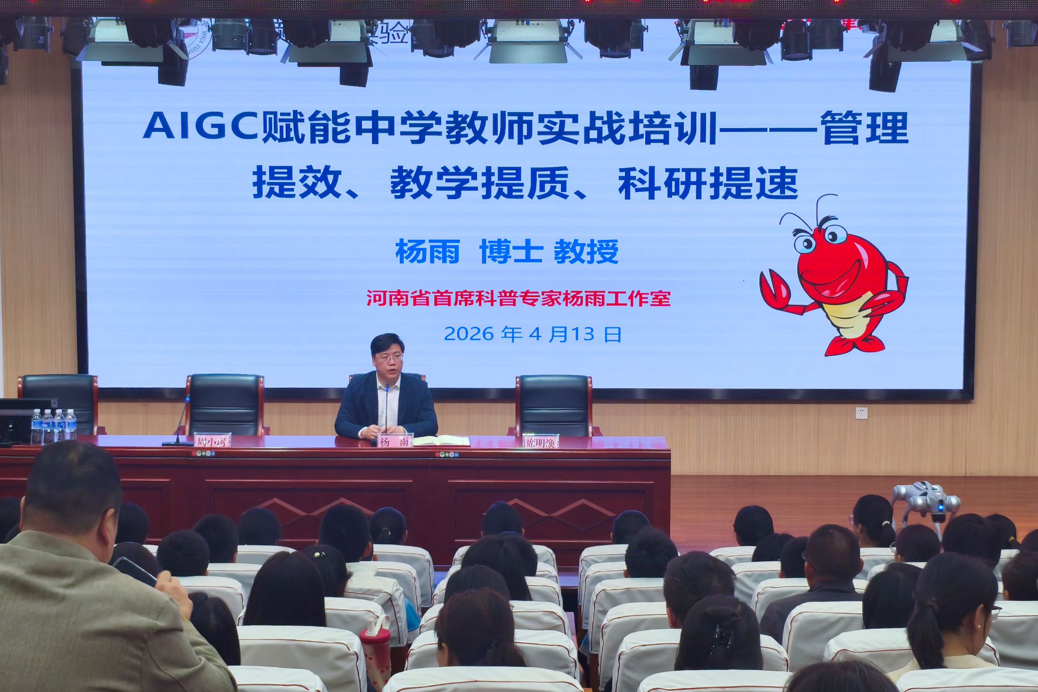 主题培训环节,杨雨立足AIGC技术发展趋势与教育应用前景,以严谨专业的视角、深入浅出的方式,系统解读人工智能技术赋能教育教学变革的核心价值与实践路径。他结合实际案例,全面展示人工智能技术在日常生活、教育教学中的多元化应用场景,并聚焦中学教育教学实际需求,针对课件研发、教案撰写、教学内容优化等核心教研工作,开展全流程实操演示,详细讲解AI教学工具的规范使用方法与高效应用技巧,为中学教师提升教研工作质效、创新教学模式提供了科学可行的实践方案,获得在场教师的一致认可。