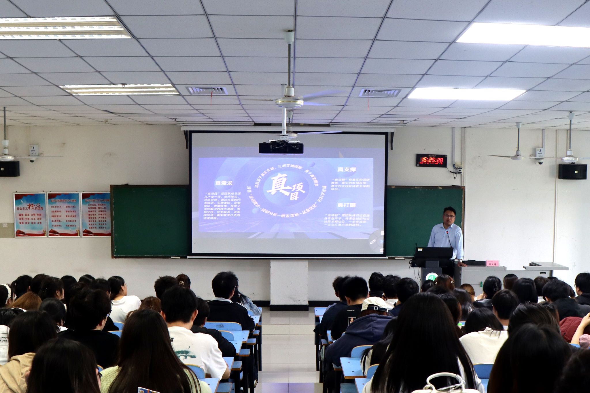 别文博以《以赛事为舟,载青春远航——浅谈如何通过“挑战杯”实现自我突破》为题,结合自身长期指导学生参与学科竞赛的经历,分享了陪伴学生从零基础起步探索,历经项目反复打磨,最终荣获国家级荣誉的历程。参赛学生的成长蜕变直观呈现了学科竞赛在提升学生综合能力、助力成长成才方面的重要作用。他聚焦“挑战杯”项目打磨,重点讲解了“真项目、真需求、真支撑、真打磨”的备赛理念,项目选题切忌凭空构想,要紧密结合国家战略需要、紧扣政策导向和社会需求,确保项目成果真实可靠、商业模式科学可行、现实价值清晰凸显。同时,他结合贴近学生实际的鲜活案例,深入剖析了备赛过程中常见的选题迷茫、团队协作不畅、科研思维不足等问题,为同学们厘清备赛思路和打磨项目内容提供了切实可行的借鉴和参考。