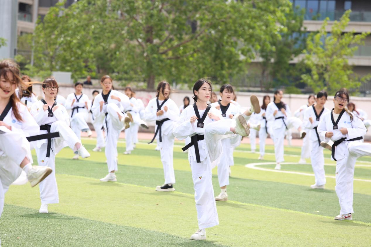 接下来,近千名学子用精彩的团体表演拉开了我校2025年春季运动会的序幕。由校龙狮队带来的《龙承古韵·狮跃新章》刚劲有力、配合默契,展现了平院人积极向上的精神风貌;柔力球表演动作整齐、连贯流畅,体现了力与美的完美结合;擒敌拳表演气势磅礴,展现国防英姿;花球啦啦操表演青春无限、活力飞扬;跆拳道表演尽展刚柔并济之美,更是将现场氛围推向了高潮。