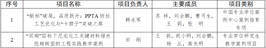 近日,河南省教育厅发布《关于公布2026年河南省研究生教育改革与质量提升工程项目(案例项目)名单的通知》(教办研〔2025〕257号),化学与环境工程学院韩永军教授团队申报的《“新标”破局,品质跃升:PPTA纺丝工艺优化与“卡脖子”技术突破之路》项目成功获批2026年河南省中国专业学位案例中心案例培育专项项目,田刚副教授团队申报的《“双碳”目标下尼龙化工关键材料绿色低碳转型的工程实践教学案例》项目成功获批2026年河南省专业学位研究生教学案例项目。