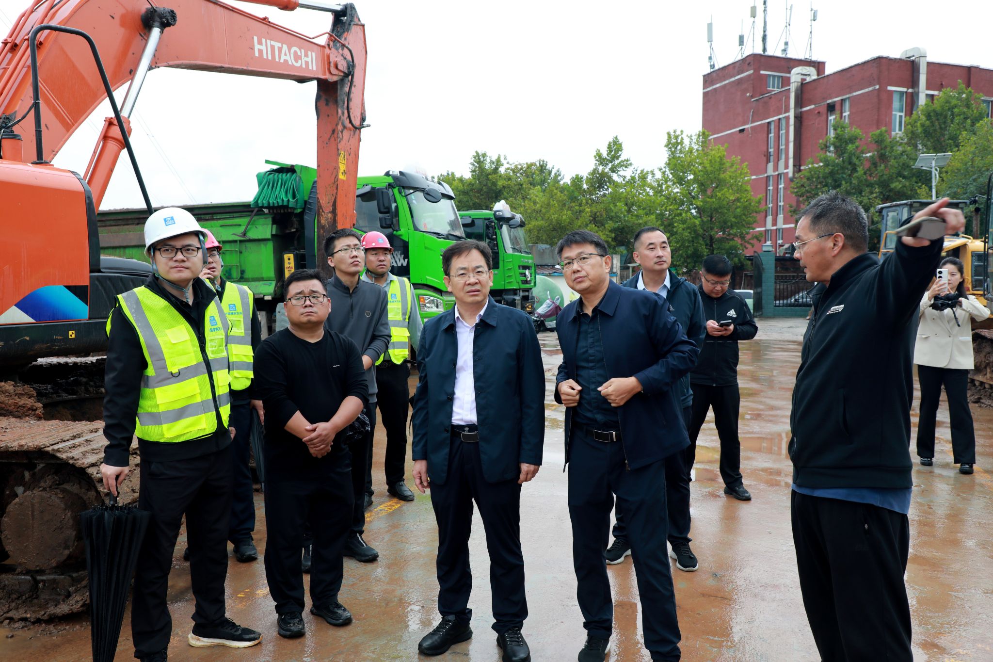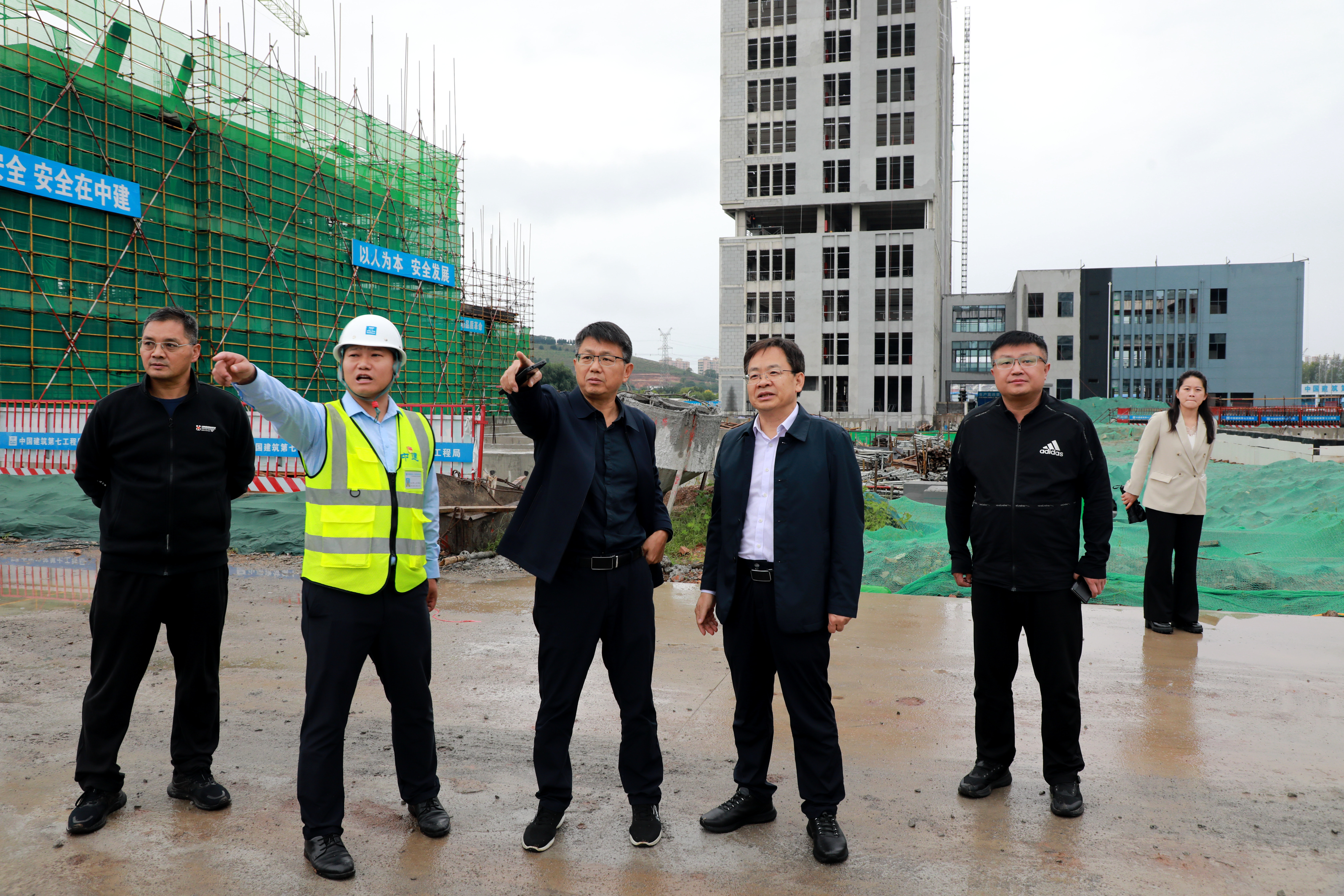 在新宿舍楼工地听取进度汇报(摄影/王卓菲)