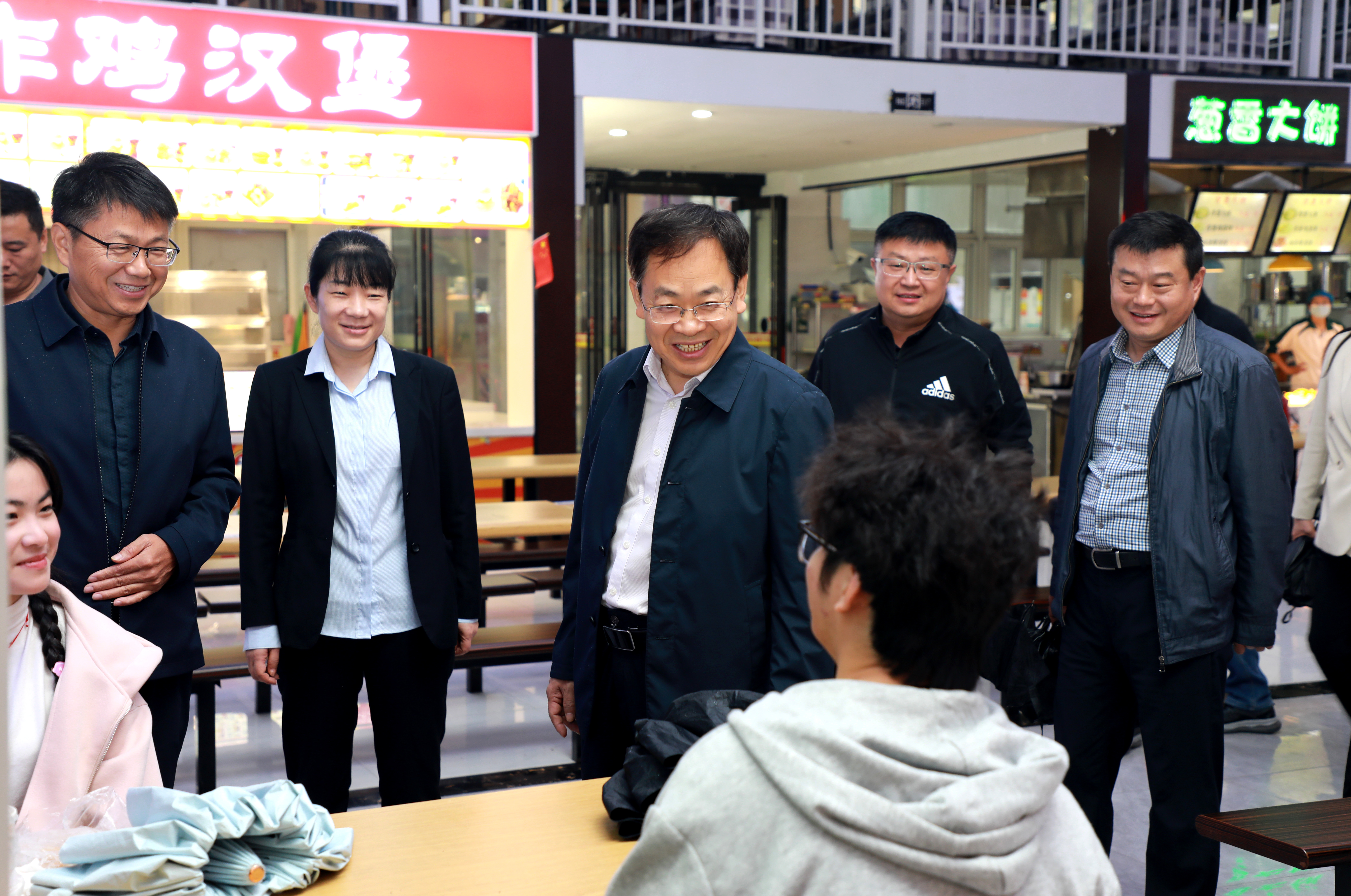 在餐厅与就餐学生交谈(摄影/王卓菲)