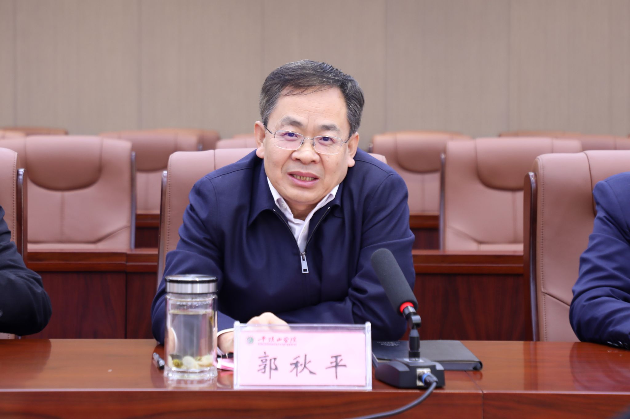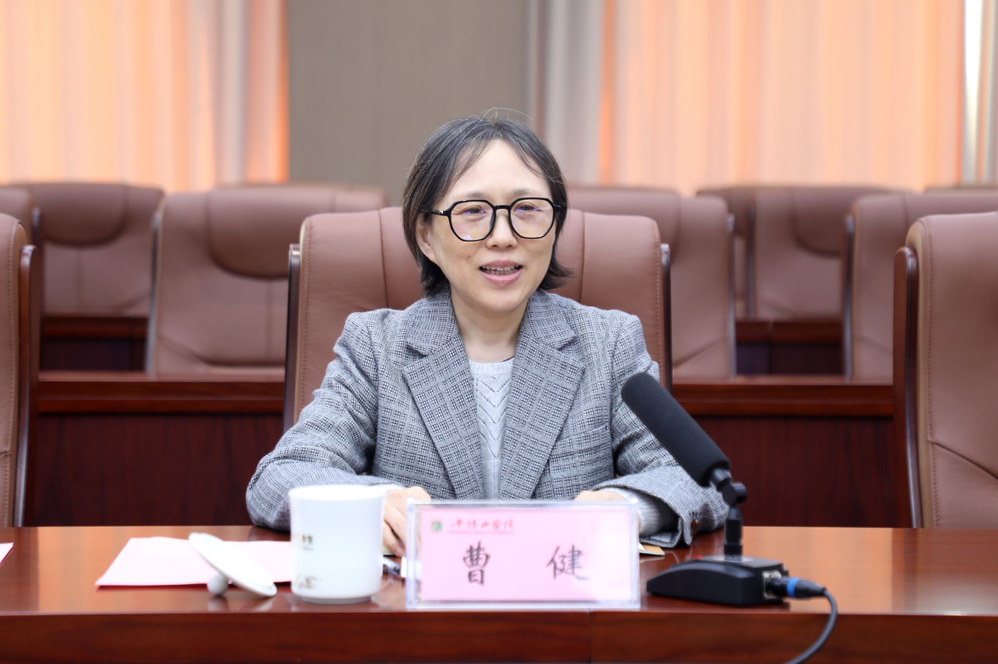 曹健对我校的热情接待表示感谢,对我校近年来事业发展取得的成绩表示赞赏。她详细介绍了信阳农林学院的发展历程、办学特色、重点建设任务与未来规划,并表示希望在全面考察交流的基础上,重点就本科教育教学审核评估、硕士单位立项建设等战略重点任务,进一步加强与我校的合作交流,共促发展。