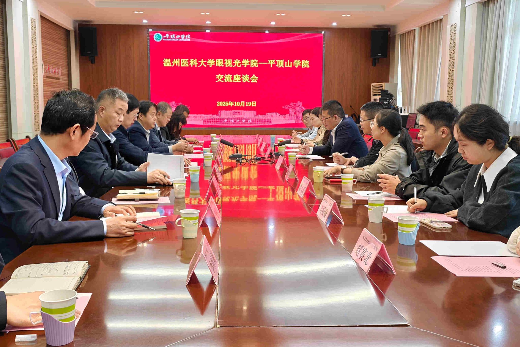 张建书记详细介绍了温州医科大学眼视光学院(生物医学工程学院)、附属眼视光医院的发展历程、学科体系和科研建设情况,高度评价了平顶山学院在服务地方经济与产业发展过程中形成的鲜明特色,尤其是围绕产业链布局创新链,实现了教育与医疗的深度融合。他表示,温州医科大学愿与平顶山学院携手共进,探索更多合作模式,并希望今后有更多温州医科大学优秀毕业生能够加入平顶山学院,为学校的教育事业和眼健康产业发展贡献力量。