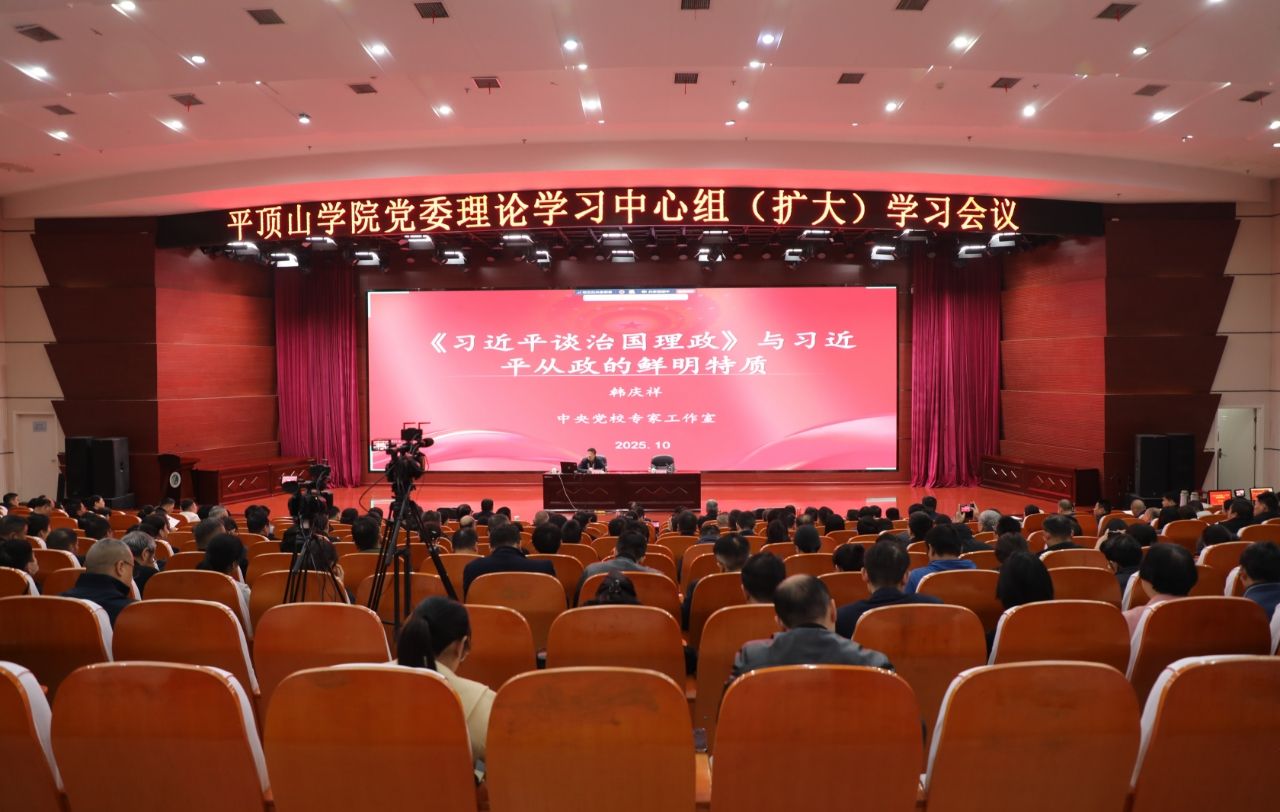 为深刻领悟习近平新时代中国特色社会主义思想的真理力量和实践伟力,持续增强学思想、悟思想、用思想的自觉性和坚定性,10月22日上午,党委书记华小鹏在湖滨校区中心会议室主持召开党委理论学习中心组(扩大)学习会议,特邀中共中央党校(国家行政学院)博士生导师、国家一级教授、第十八届中央政治局第11次集体学习主讲专家韩庆祥作专题辅导报告。校领导郭秋平、许建辉、李波、于长立、郑东丽、史永昌,全校科级以上干部及马克思主义学院全体教师参加会议。