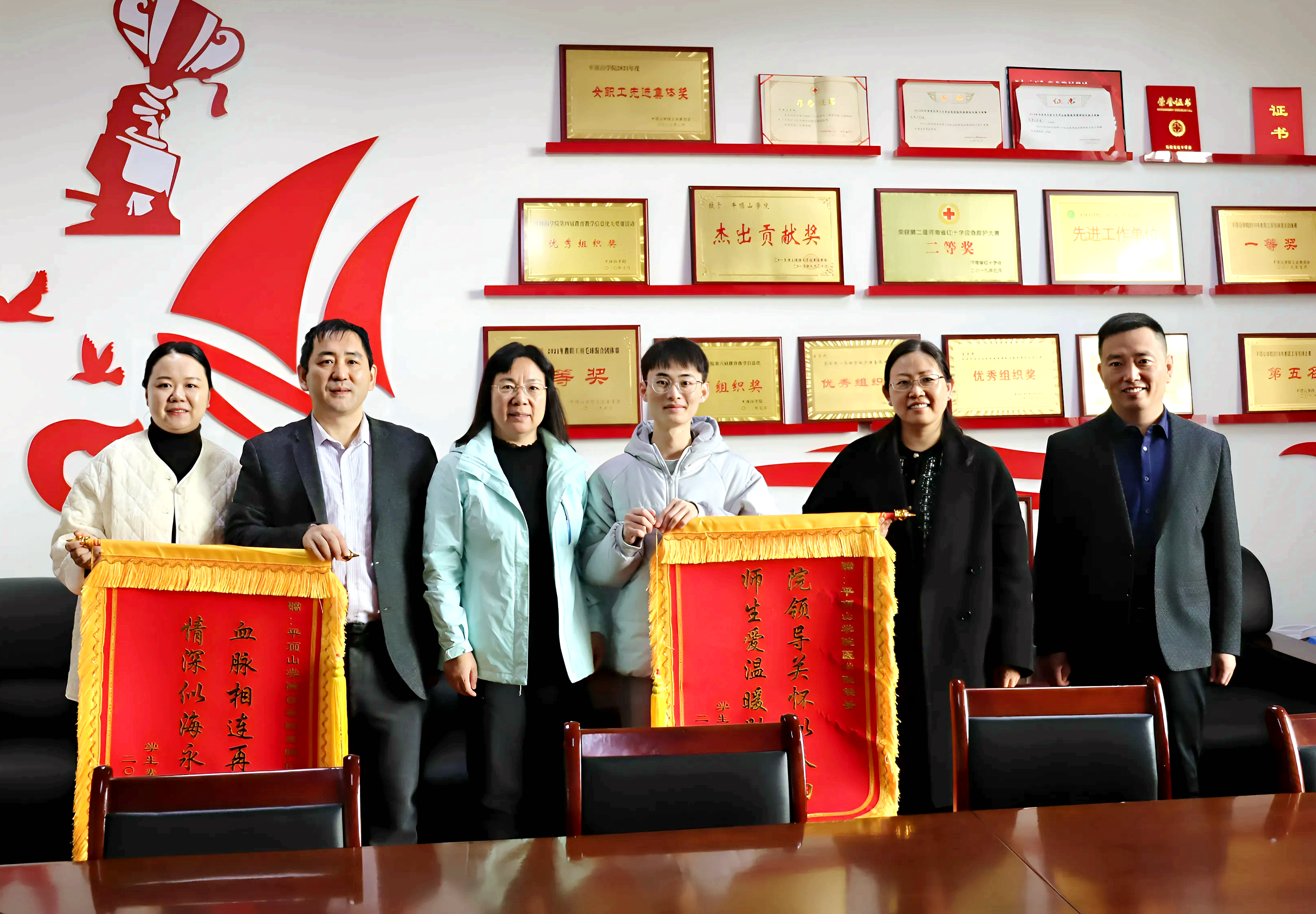 近日,一场与时间赛跑的爱心接力在医学院温暖上演。2025届毕业生麦同学(化名)因突发急性胃出血入院,治疗期间用血紧张。危急关头,医学院师生挺身而出,踊跃无偿献血,筑起生命防线。麦同学康复后,专程返回学院,将一面写有“院领导关怀似春雨,师生爱温暖胜亲人”的锦旗敬献给恩师与同窗,表达对学校的感激与敬意。