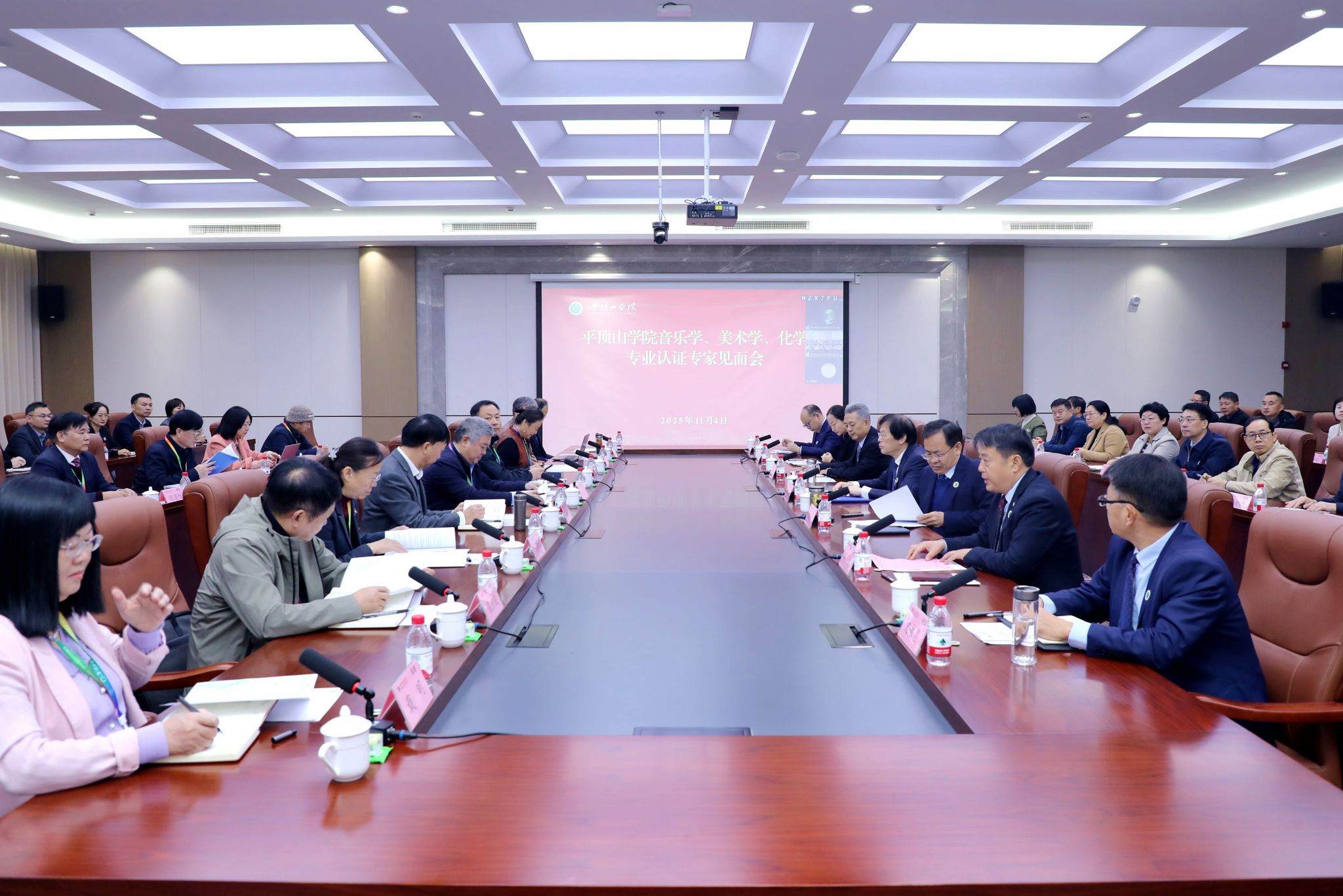 11月4日上午,我校师范类专业认证专家见面会在学校尧山实验室二楼会议室召开,河南省教育厅教师工作处主任郭铠源线上出席会议,学校领导华小鹏、郭秋平、许建辉、李波、郑东丽、史永昌、代克杰及相关职能部门、教辅单位负责人,音乐学院、艺术设计学院和化学与环境工程学院党政负责人参加会议。见面会第一阶段由副校长李波主持。