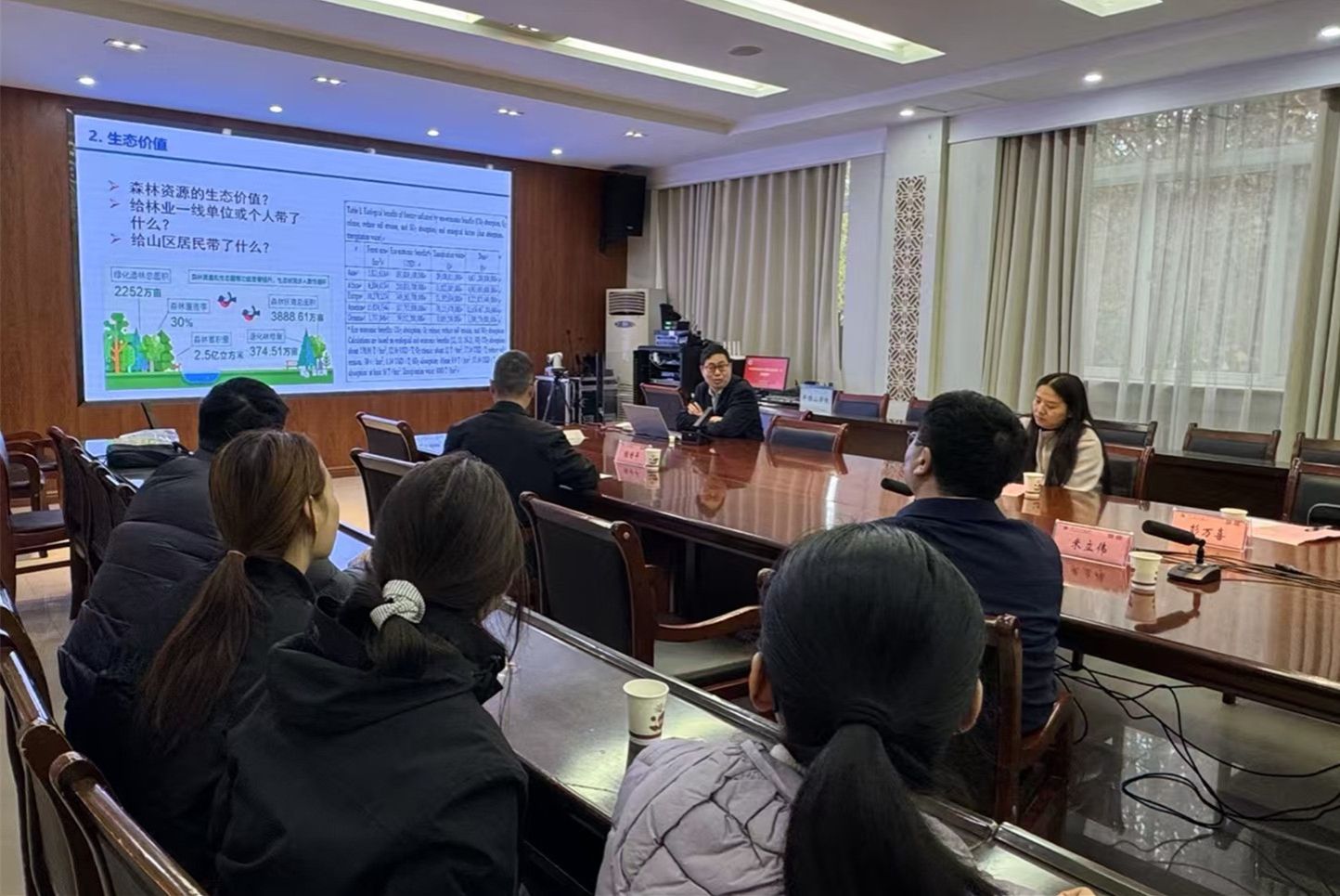 在实验室工作汇报环节,科研处副处长、重点实验室副主任程世平详细汇报了实验室在种质资源收集保存、品种选育、科研项目承担、成果转化及人才团队建设等方面的工作进展。随后,彭万喜教授以《森林淘金》为题作学术报告,从造林目标与森林价值双重维度,深入剖析林业产业发展现状与痛点,围绕森林康养、木材加工、林药研发、植物与心理交互、生物农药创新等领域展开系统阐述,为我校相关研究提供了重要学术指引。座谈交流阶段,双方就科研项目联合申报、科技奖励协同攻关、人才联合培养等议题深入研讨,达成多项合作共识。