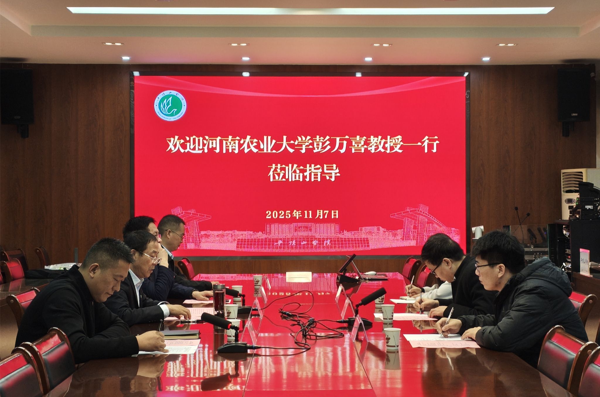 11月7日上午,河南农业大学中原学者彭万喜教授携林学院卢文杰教授、理学院韩丹丹副教授一行3人莅临我校,围绕河南省生态经济型木本植物种质创新与利用重点实验室建设、科研协同创新及人才联合培养等核心议题开展深度交流。我校副校长、重点实验室主任于长立,副校长米立伟,科研处负责人、重点实验室骨干成员及研究生代表参加交流活动。