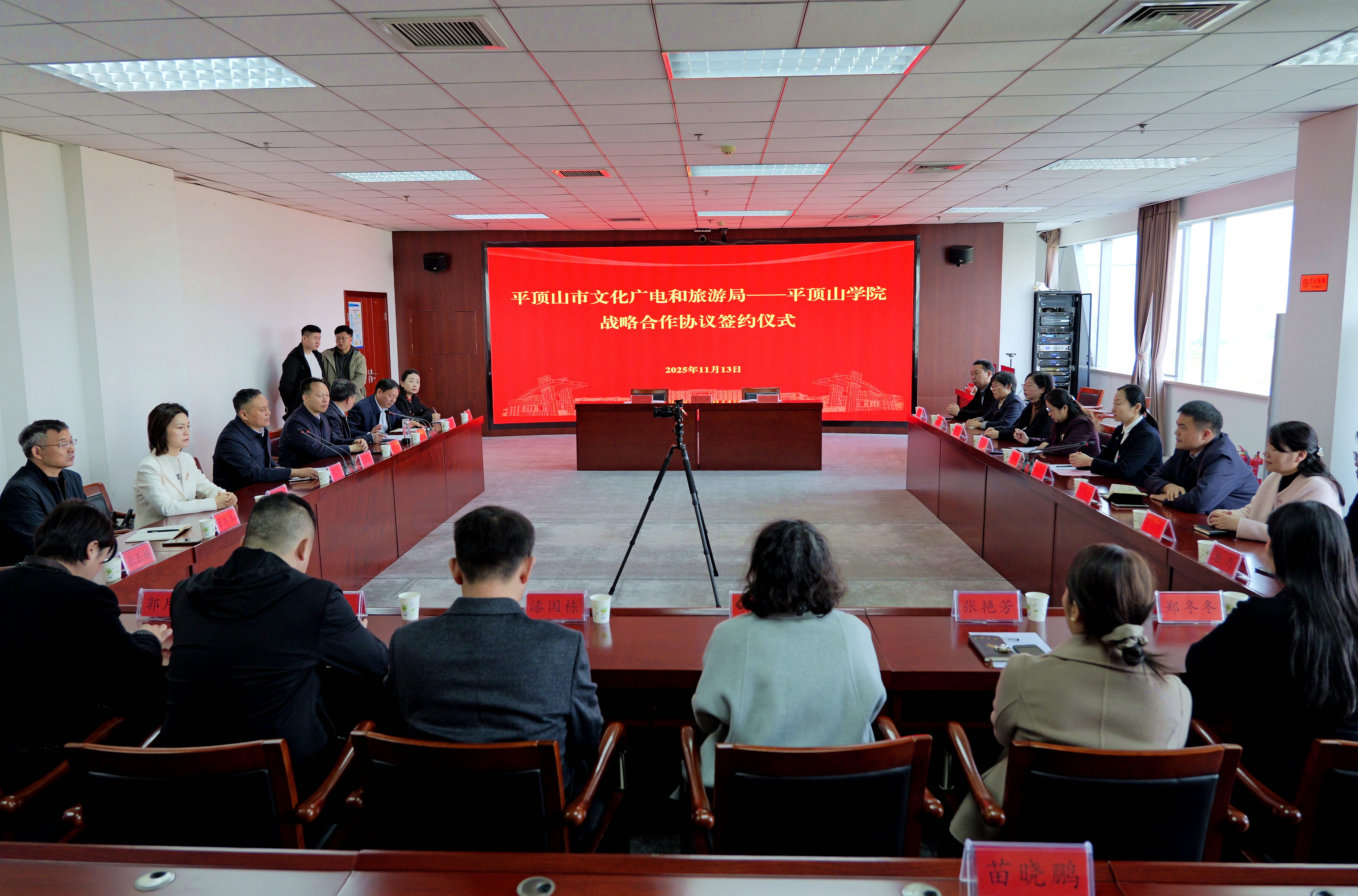 11月13日上午,我校与平顶山市文化广电和旅游局战略合作签约仪式在市文化艺术中心举行。副校长郑东丽,市文化广电和旅游局党组书记、局长郭杰出席仪式。我校地方合作处和相关二级学院负责人,市文化广电和旅游局及局属单位负责人参加仪式。