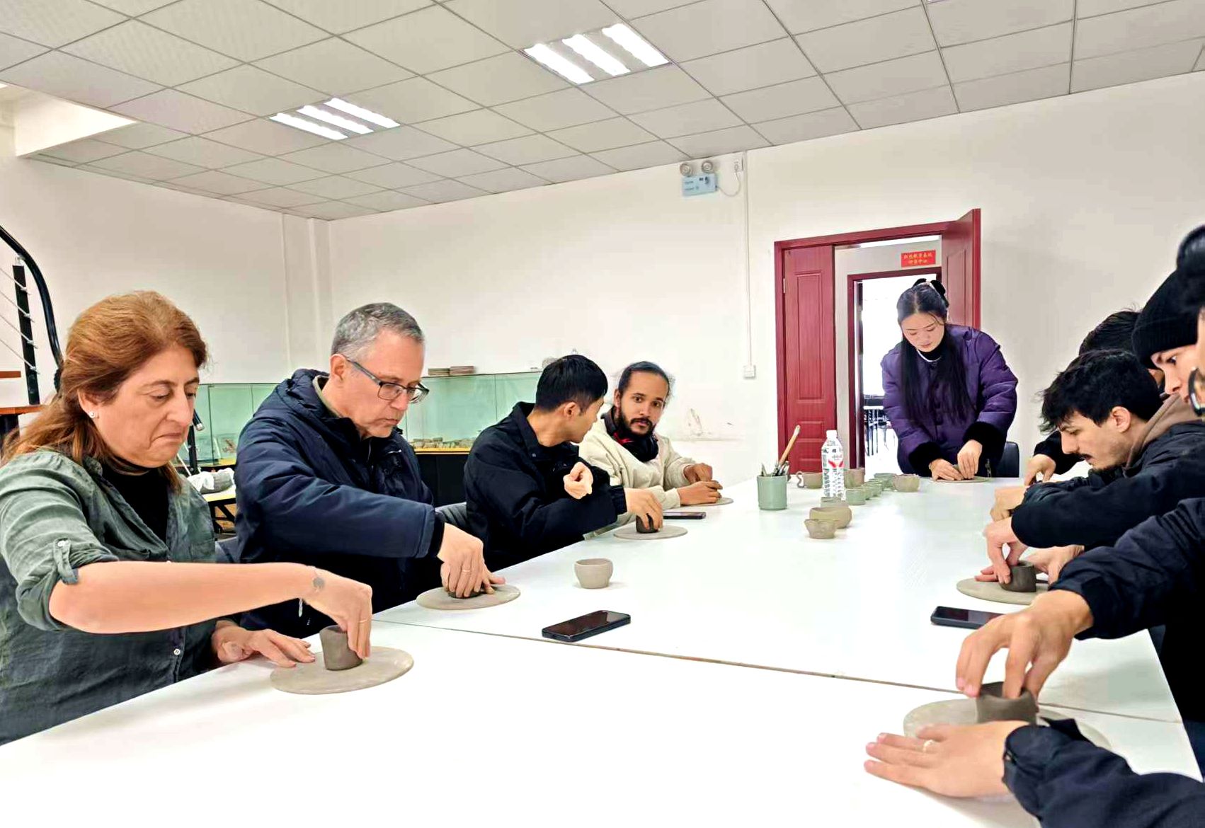 11月22日,国际交流与合作中心组织我校7名马拉加工程学院来自西班牙、古巴的外籍教师,赴我校河南省汝瓷文化国情教育基地——汝州弘宝汝瓷文化园开展参观体验活动。
