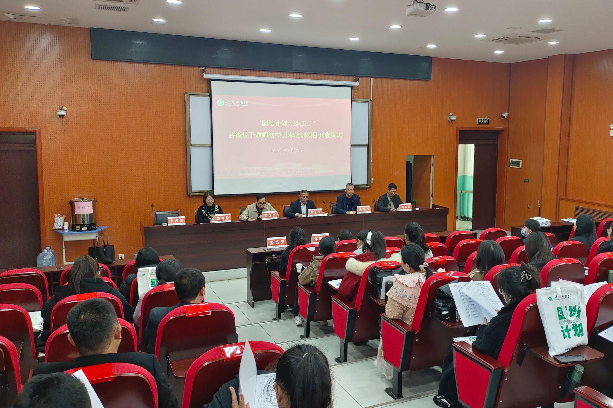 11月29日下午,由河南省教育厅主办、平顶山学院承办的“国培计划(2025)”初中美术县级骨干教师培训班开班典礼在平顶山学院崇文校区顺利举行。副校长于长立出席典礼并致辞,继续教育学院、艺术设计学院负责同志和来自全省各地的50名初中美术县级骨干教师共同参加开班典礼。典礼由艺术设计学院党委书记张运生主持。