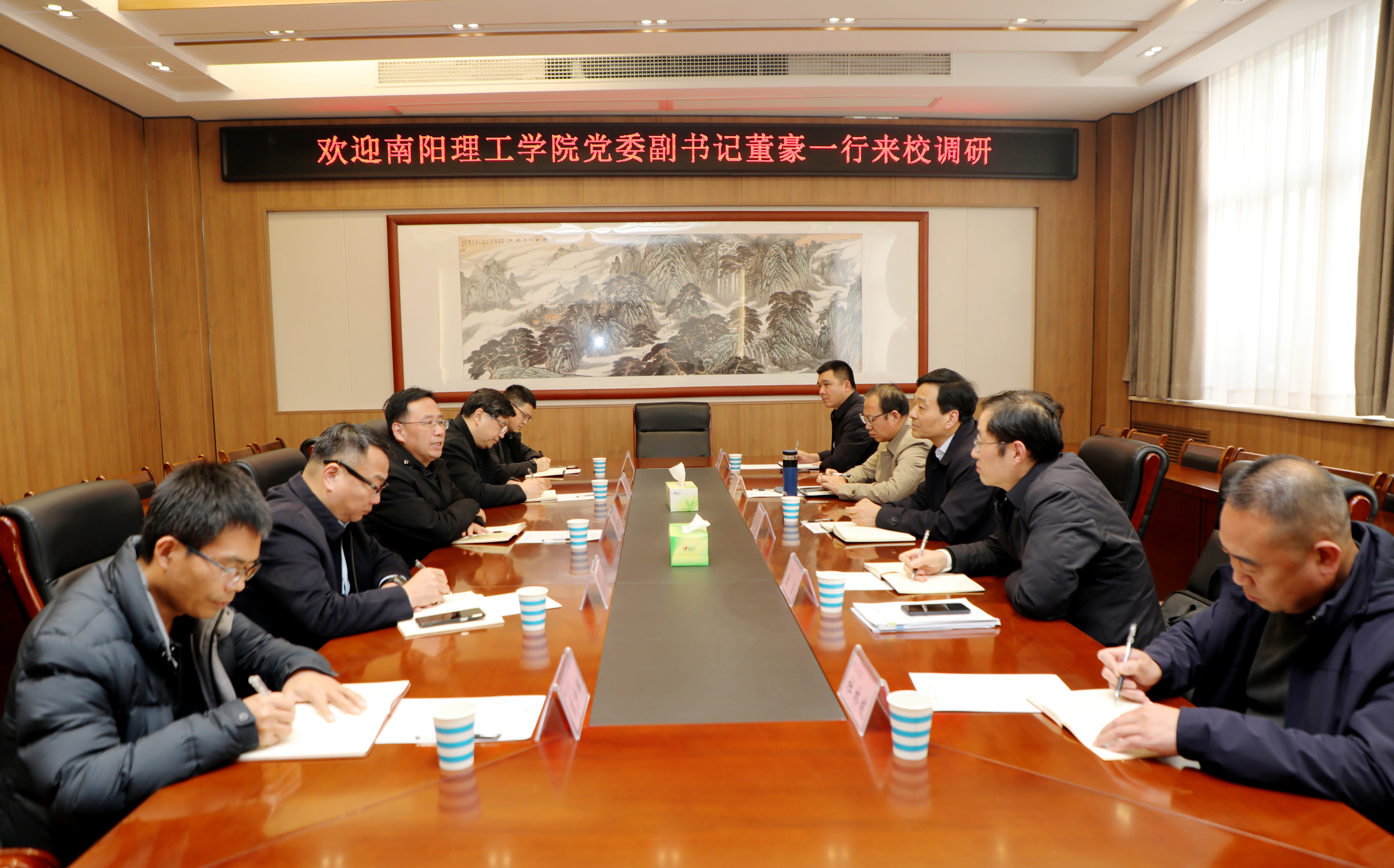 12月4日下午,南阳理工学院党委副书记董豪一行来到我校调研,并围绕校园文化建设、干部队伍建设等工作开展座谈交流。座谈会在办公楼第一会议室举行,校党委副书记侯延民,党委组织部、党委宣传部相关负责同志参加座谈。