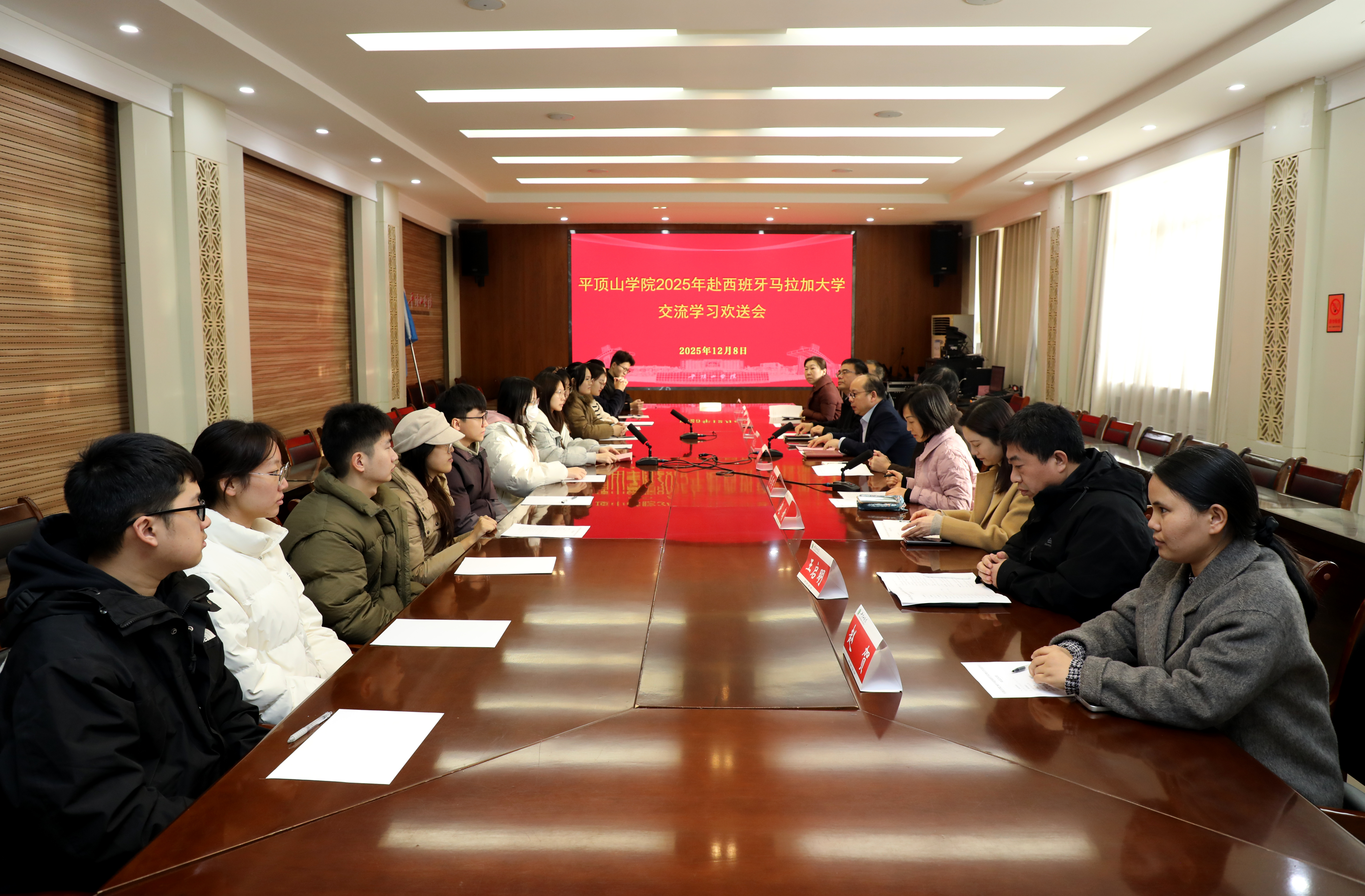 12月8日下午,我校在行政楼329会议室举行了2025年赴西班牙马拉加大学研学团行前教育暨欢送会。副校长代克杰出席会议,教务处、国际交流与合作中心、马拉加工程学院等单位负责人、中外合作办学项目专员及全体研学团成员参加会议。会议由马拉加工程学院党委书记孙学荣主持。