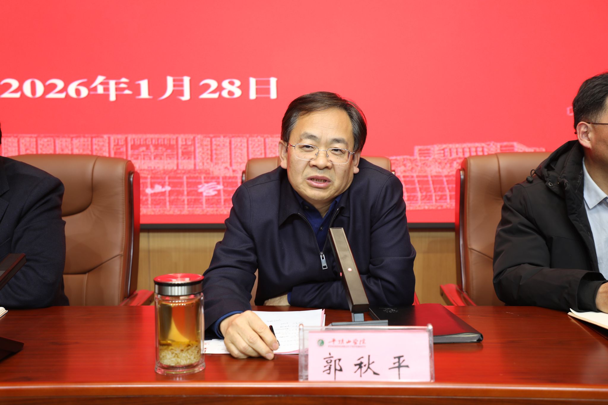 关于2026年的工作,郭秋平提出五点明确要求:一要强化信心。引用“等闲识得东风面,万紫千红总是春”,强调学校正处在新的发展阶段,必须坚定发展信心,保持战略定力,以踔厉奋发、笃行不怠的精神状态朝着“三步走”战略目标阔步前进。二要坚持人才引领。引用“我劝天公重抖擞,不拘一格降人材”,指出学校事业高质量跨越式发展需要大批高层次高水平人才,希望大家广泛招揽人才,竭力善待人才,充分支持人才,用“第一资源”推动学校高质量发展。三要崇尚实干奋斗。借用“鸿雁长飞光不度,鱼龙潜跃水成文”的意境,强调“任何奋斗都会留下痕迹”,把行动作为最好的语言,在实干奋斗中创造实绩、留下印记。四要珍惜时间积累。强调“时间就是力量”,成就源于积累。要树立更高标准,敢于向困难攻坚,在不断自我超越中做最好的自己,通过日积月累的努力实现从量变到质变的飞跃。五要凝聚集体合力。明确指出“2026年我们怎么样,平顶山学院就怎么样”。学校发展依靠大家的努力奋斗,要立足岗位、尽职尽责,从当下做起,将个人的点滴努力汇聚成学校奋进新征程的磅礴力量。