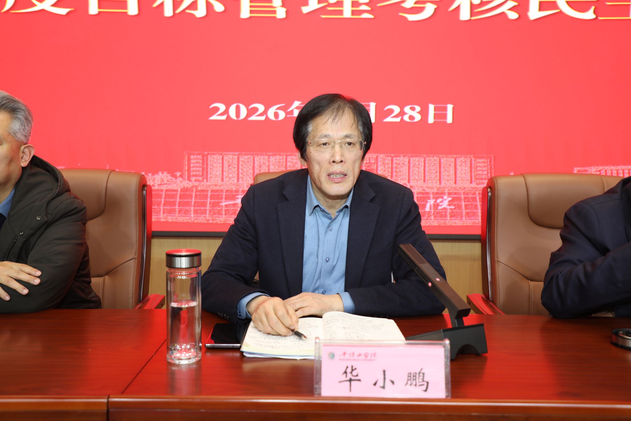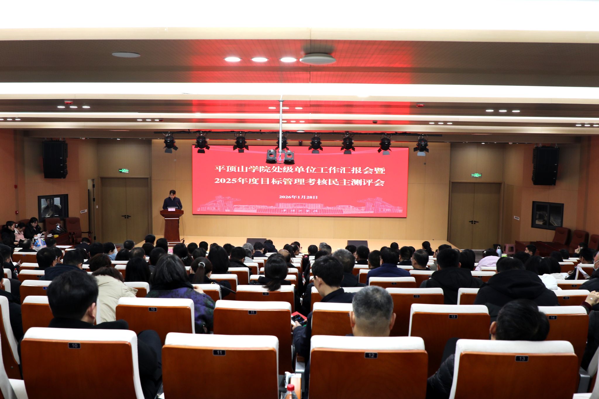 1月28日,我校在尧山实验室一楼会议室召开处级单位工作汇报会暨2025年度目标管理考核民主测评会,校领导华小鹏、郭秋平、许建辉、侯延民、李波、于长立、史永昌、代克杰、白燕及全校中层干部参加。会议由副校长李波主持。