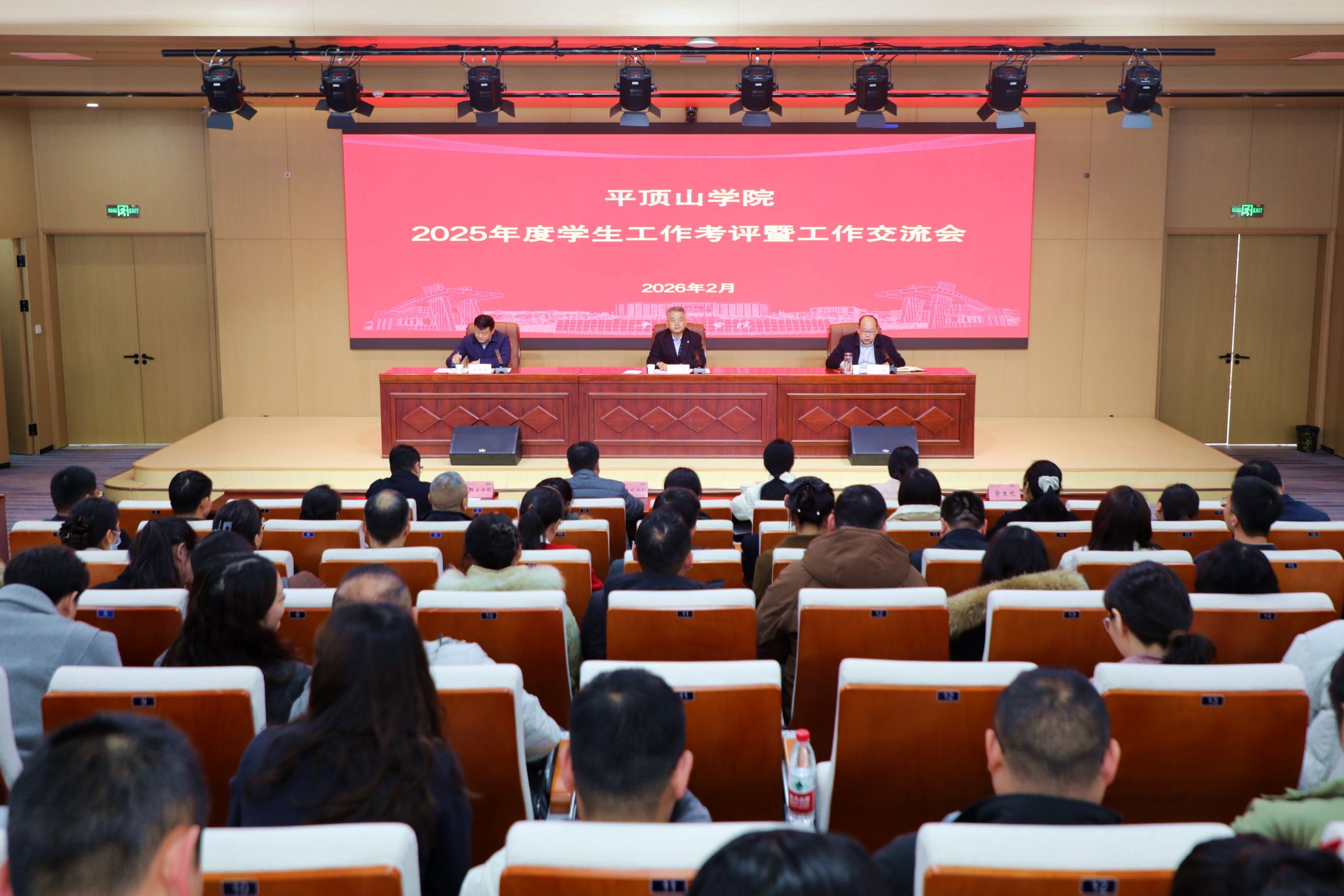 许建辉作总结讲话,充分肯定了2025年度我校学生工作成绩,要求全体学工人员要以此次考评交流会为契机,学习互鉴、补齐短板,持续推动我校学生工作质量不断提升。他指出,2026年学生工作要坚持“发扬成绩、弥补短板、规范管理、提升质效”的总体工作思路,并对全体学工队伍提出四点希望:一是强化理论武装,站稳政治立场。深刻把握高校思想政治工作的政治属性,始终牢记为党育人、为国育才的初心使命,把思想政治教育贯穿学生工作全过程;二是树立和践行正确政绩观。要深刻反思自身的工作理念、工作方法,务实推进各项育人工作;三是防范职业倦怠,坚守育人初心。全体学工同志要以身作则,以自身言行举止潜移默化影响学生、塑造学生;四是严守纪律底线,筑牢廉洁防线。始终做到守住底线、不碰红线、不触高压线,自觉维护学工队伍良好形象,共同营造风清气正的育人环境。