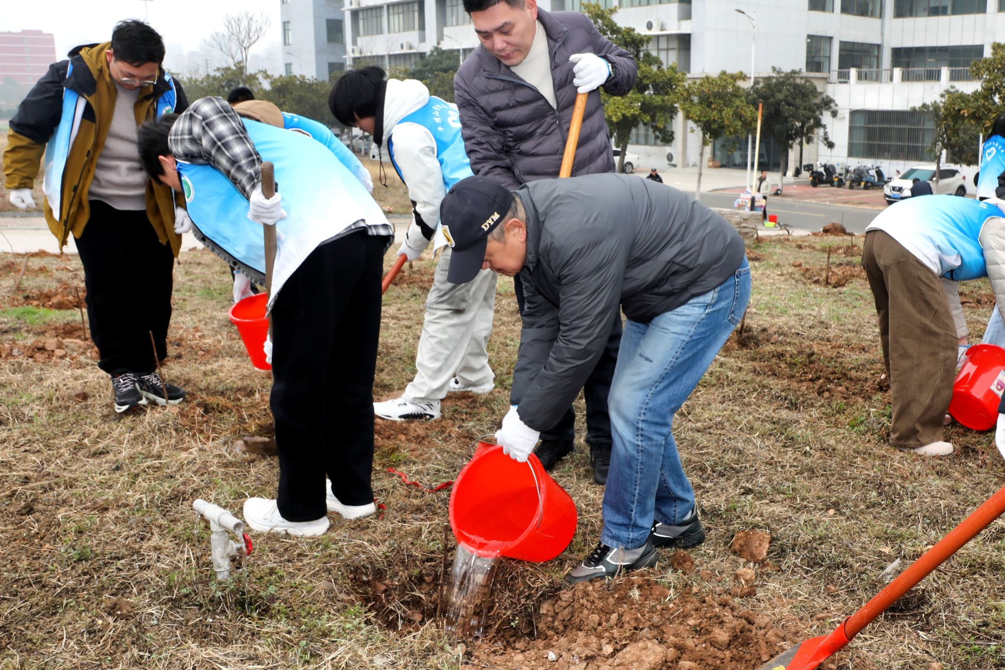 活动现场,贺德稳与师生志愿者们一同参与植树活动。师生志愿者以小组为单位,分工协作、配合默契,挖坑、放苗、填土、压实、浇水,每一道工序都细致认真,全程干劲十足。热火朝天的劳动场景中,师生们用汗水浇灌新苗,用协作传递温情,充分展现了我校师生践行生态理念、主动担当作为的良好风貌。经过一个多小时的奋战,1000余棵树苗在崇文校区指定区域整齐挺立,为美丽校园增添了盎然生机,也让生态文明理念在实践中落地生根。