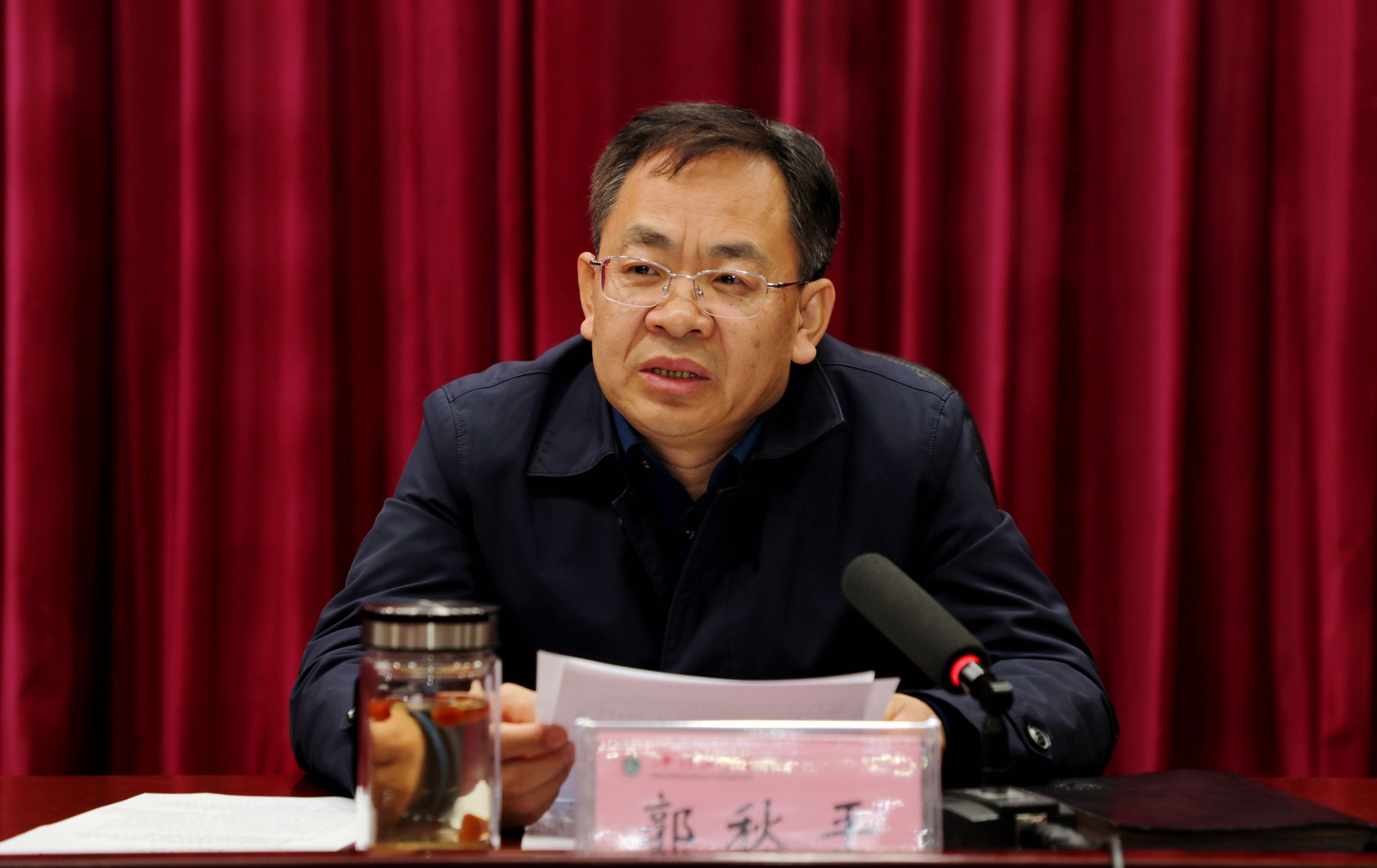 校长郭秋平主持会议(摄影/陈鹏)