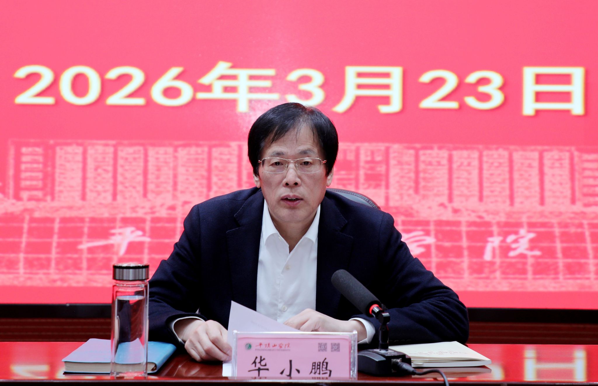 就办好本次读书班,华小鹏提出明确要求。一是要原原本本学,做到“学有所思”。坚持读原著、学原文、悟原理,静下心来逐字逐句研读《习近平关于树立和践行正确政绩观论述摘编》,深刻领会其政治意蕴、理论内涵和实践要求。二是要带着问题学,做到“思有所悟”。紧密联系学校改革发展实际和党员干部思想实际,深入查摆在办学治校、立德树人、服务发展等方面存在的差距与不足,在学深悟透中提高政治站位、凝聚思想共识。三是要笃信笃行学,做到“悟有所行”。把学习成果转化为谋划学校“十五五”发展的战略思路,转化为破解人才培养、学科建设、内部治理等难题的务实举措,转化为服务国家战略和地方发展的实际成效。集中学习结束后,与会人员集中观看警示教育片。