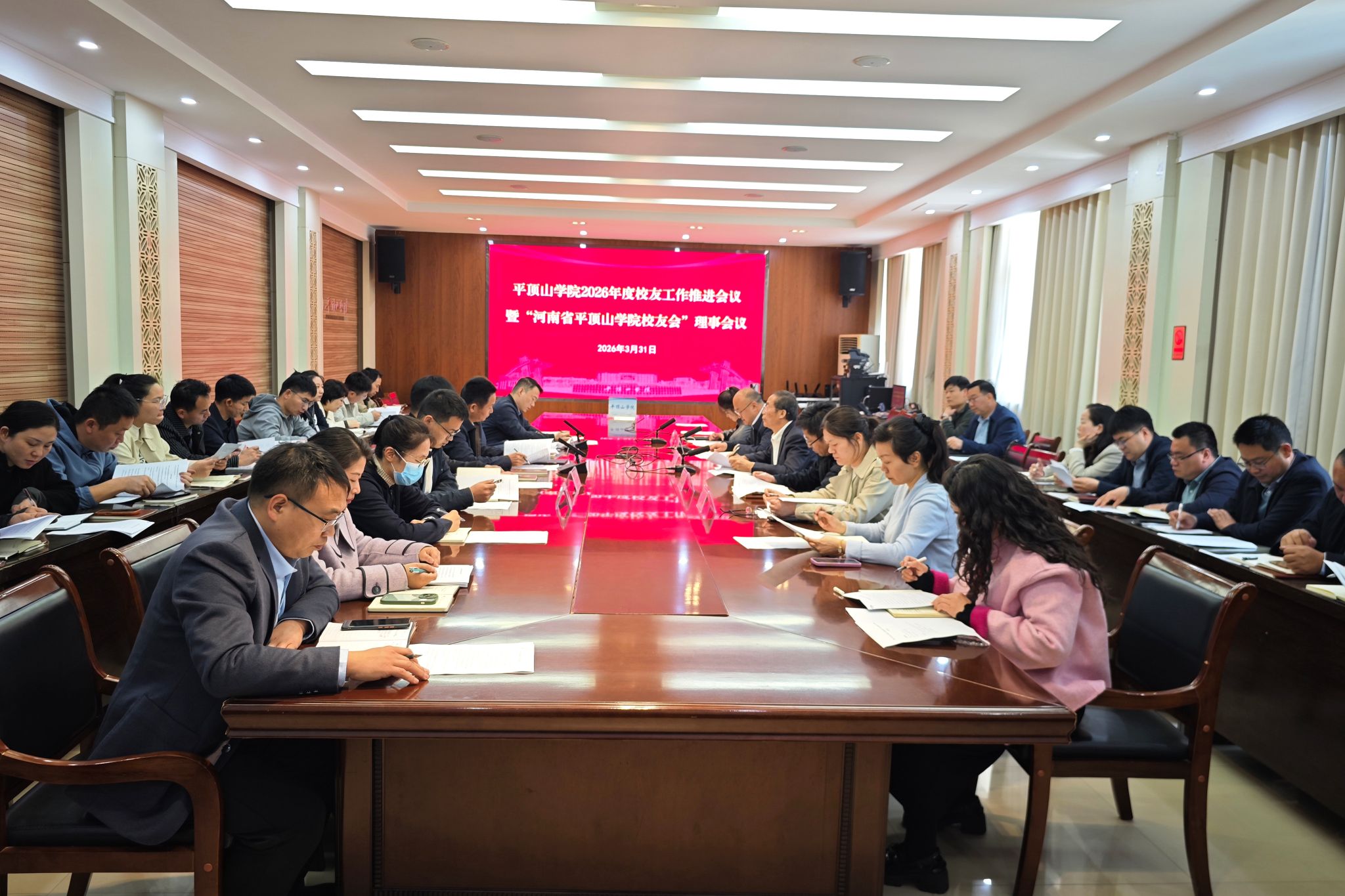 3月31日上午,我校在办公楼329召开了2026年度校友工作推进会暨“河南省平顶山学院校友会”理事会。副校长于长立,校友会理事代表、二级学院及相关职能部门负责人齐聚一堂,共商校友工作和校友会发展。会议由校友会办公室主任梁广成主持。