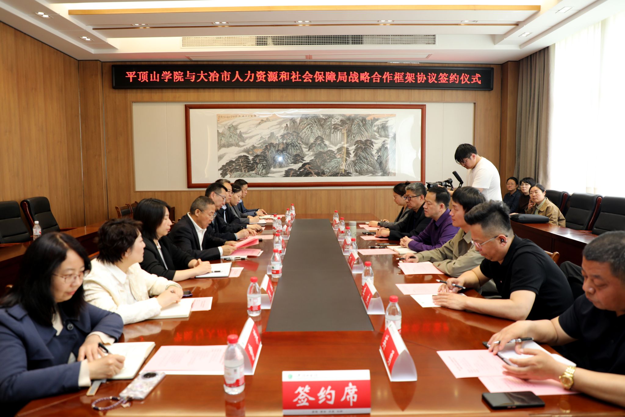 仪式上,平顶山学院与大冶市人力资源和社会保障局签订了战略合作框架协议,双方就人才引育、实习实训、就业创业等方面达成合作意向。