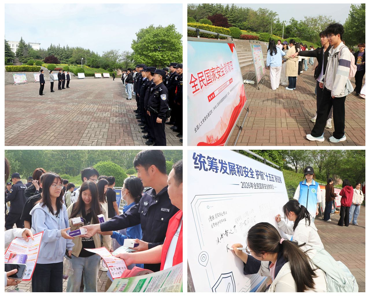 为深入学习贯彻总体国家安全观,进一步增强学校师生的国家安全意识和法治观念,扎实推进平安校园建设,4月15日,学校联合平顶山市示范区综治办、公安分局在扇形广场举办全民国家安全教育日暨平安建设集中宣传活动。平顶山市示范区综治办、示范区公安分局、特巡警大队等单位相关负责人,以及我校党委办公室、保卫处等单位相关负责人、学生代表共同参加了本次活动。