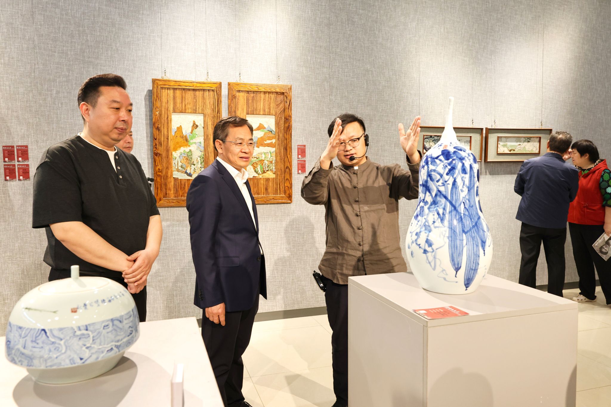徐立新对姚来义的绘画技法及绘画与陶瓷融合的创新实践给予高度评价。他指出,姚来义的绘画既传承传统精髓又融入当代审美,尽显其艺术功底与人文情怀,实现“瓷中有画,画中有瓷”的艺术境界。