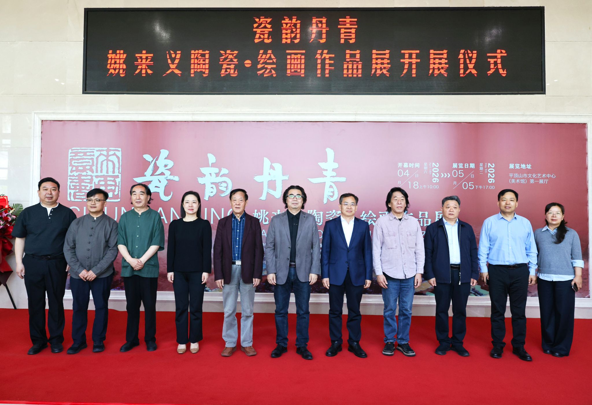 4月18日上午,“瓷韵丹青——姚来义陶瓷·绘画作品展”在平顶山市文化艺术中心(美术馆)正式开展。此次展览由平顶山学院、中共平顶山市委宣传部、河南省美术家协会、河南省陶瓷艺术协会联合主办,平顶山学院陶瓷学院、平顶山市文化艺术中心承办,平顶山市陶瓷发展促进中心、平顶山市美术家协会协办。