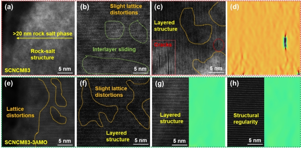 高镍单晶正极材料凭借极高的能量密度,是下一代锂离子动力电池极具应用前景的核心正极材料。但材料在充放电循环相变过程中易产生结构应力,诱发电极微裂纹滋生与岩盐杂相生成,导致电池循环寿命大幅衰减,严重制约了高镍电池的产业化应用。针对该行业技术瓶颈,本研究创新提出柔性掺杂改性策略,通过在电极表面构筑高弹性包覆层,有效缓冲循环应力、抑制结构开裂,显著提升高镍单晶正极结构稳定性,为破解高镍正极材料结构失效难题提供了新型技术思路。该研究得到省内锂电龙头企业恒一锂能科技公司支持,是我校陈昌东博士团队深化校企协同创新、服务地方新能源产业的创新研究成果。