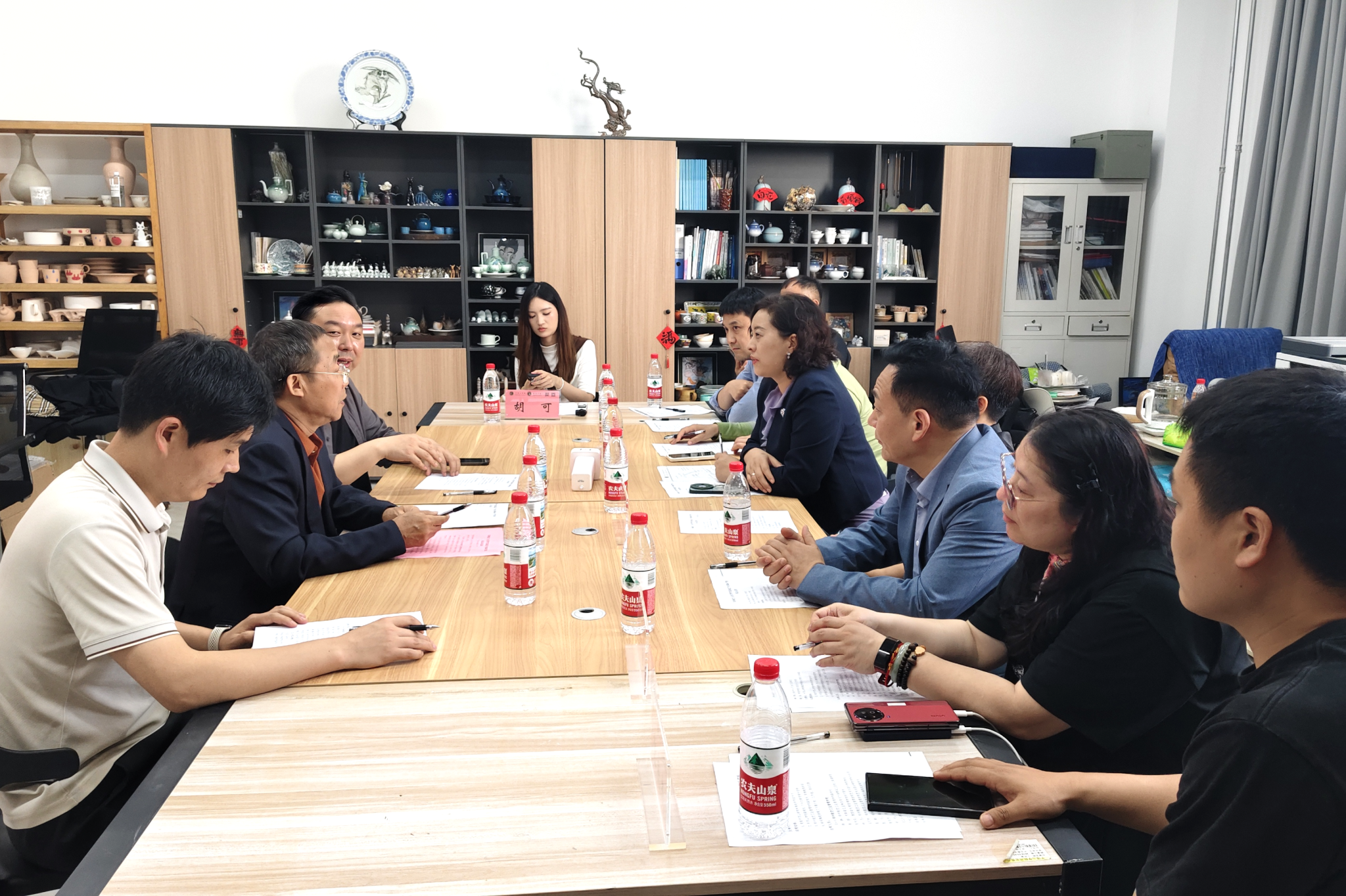 实地考察结束后,双方在文创设计工作室召开交流座谈会。全体人员共同观看了平顶山学院及陶瓷学院宣传片,全面了解我校办学历程、办学特色以及陶瓷学院学科建设、育人成果与文化传承等整体情况。