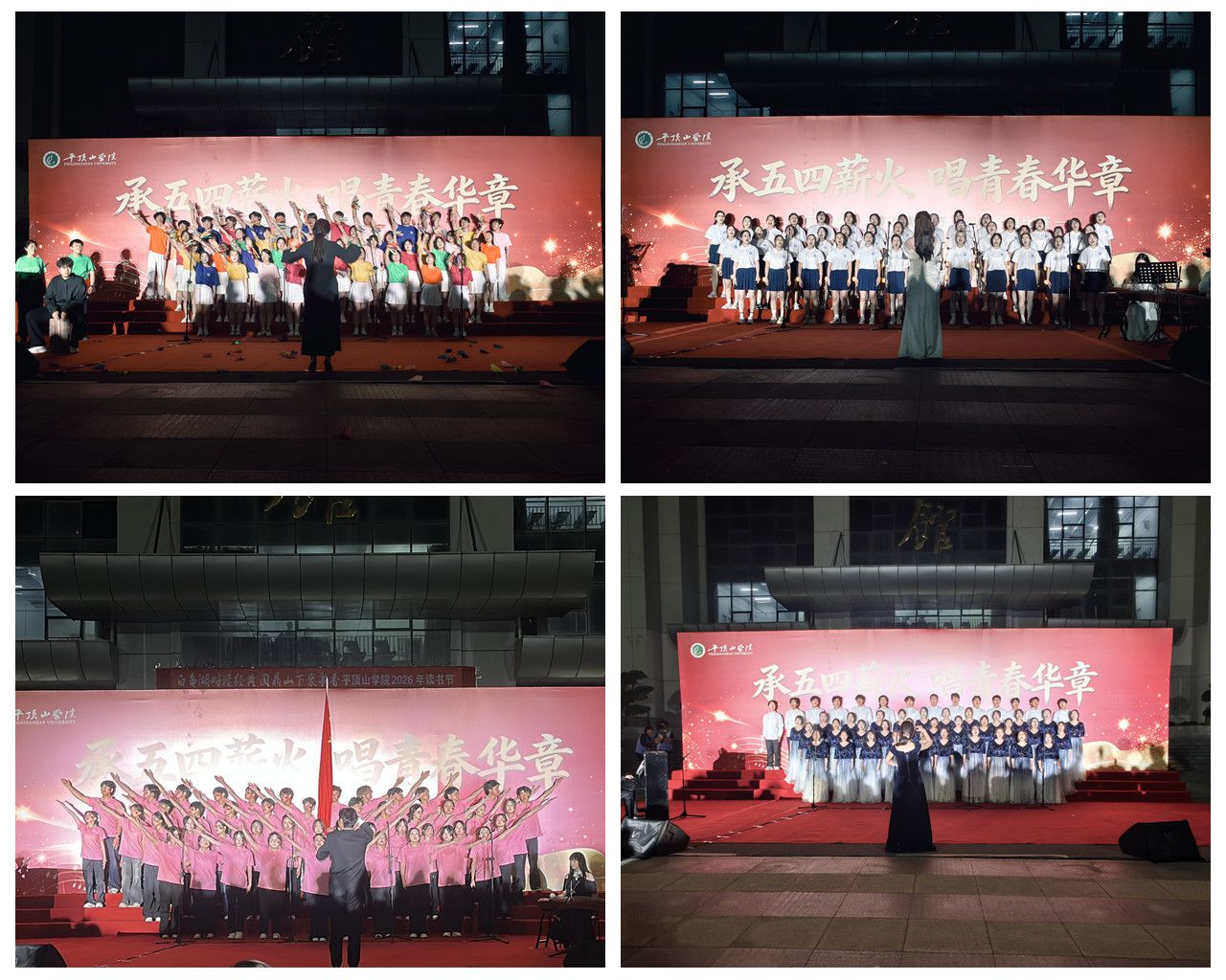 为纪念五四运动107周年,传承和弘扬“爱国、进步、民主、科学”的五四精神,展现平院青年奋发向上的精神风貌,4月29日晚,由校党委宣传部、党委学工部、团委主办,音乐学院承办的“承五四薪火·唱青春华章”五四青年节合唱比赛在图书馆北广场举行。副校长代克杰,相关部门负责同志、各二级学院团委负责人和学生代表等2000余人共同参加了活动。